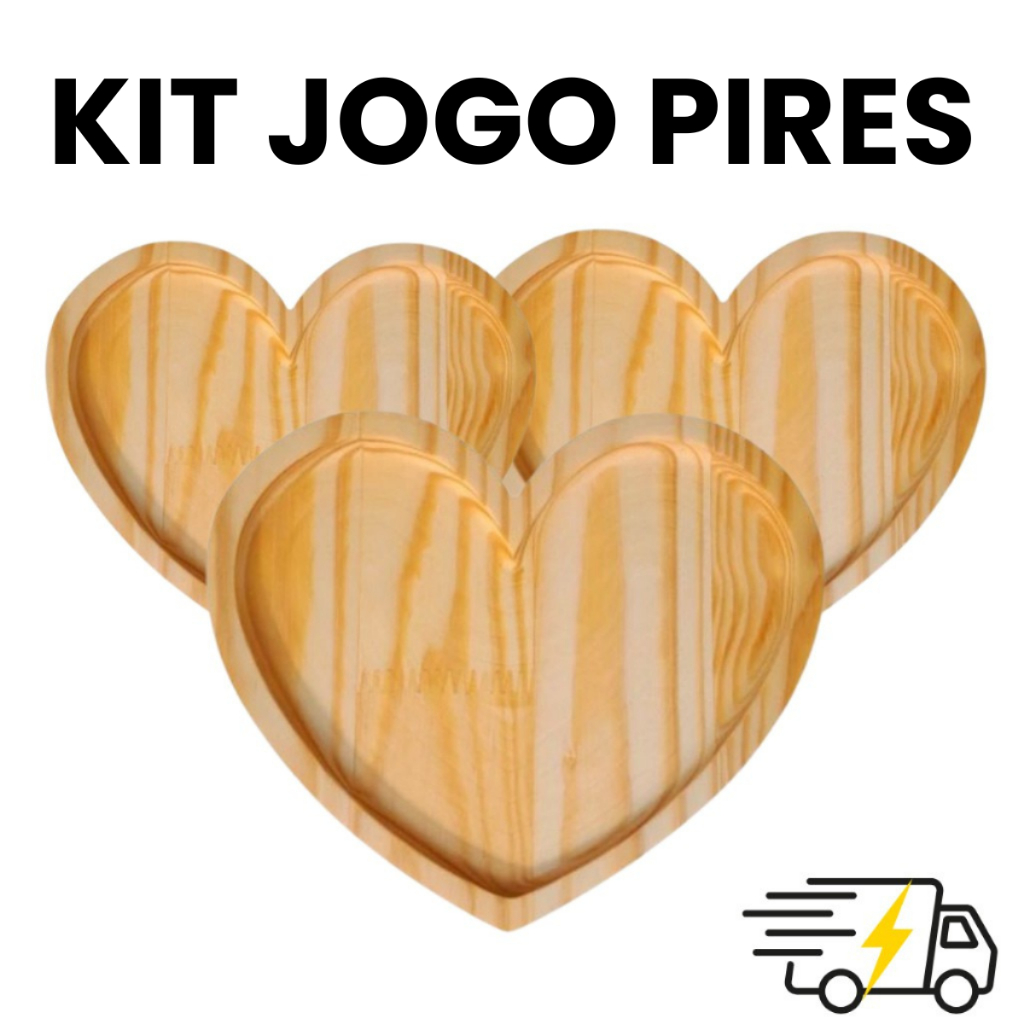 Kit Jogo de Pires em Madeira Pinus Coração Para Café Xícaras Chá Mesa Posta