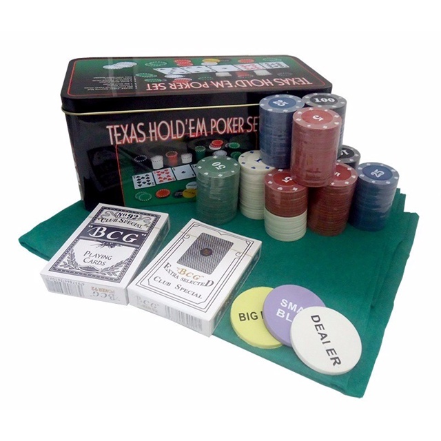 Kit Jogo De Poker Lata de 200 Fichas com Baralho + Toalha World Poker