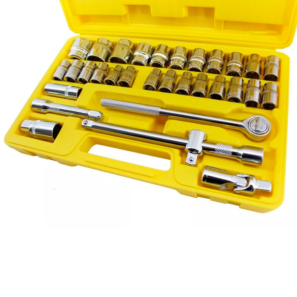 Kit Jogo De Soquetes 1/2 Pol. Com 32 Peças Aço Cromo Vanádio Cr-V Profissional Com Maleta Resistente