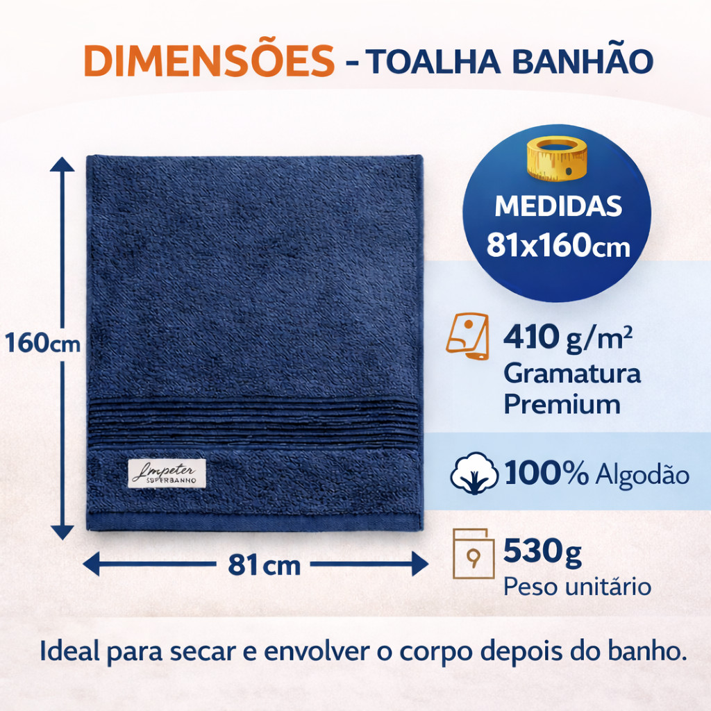 ✨ Kit Toalhas Banhão Premium 100% Algodão – Tomie LMPeter ✨ 🏆 MAIS VENDIDO - Kit Toalhas Premium 100% Algodão 🏆 LINHA PREMIUM LMPeter – DESIGN SOFISTICADO ⭐ Banhão Extra Grande – 81 x 160 cm 🛁 Toque macio, excelente absorção e acabamento decorativo elegante O Jogo de Banho Tomie foi desenvolvido para quem busca conforto, beleza e qualidade superior no dia a dia. Produzido em 100% algodão (exceto efeito decorativo), oferece secagem eficiente, toque agradável e um visual sofisticado que valoriza qualquer banheiro. 🎨 Opções de Cores (Modelo Tomie): ✅ Branco ✅ Prata ✅ Azul Marinho ✅ Rose ✅ Sálvia ✅ Marrom Expresso ✅ Urbano Grafite ✅ Kits Mistos entre as cores disponíveis (Selecione a cor desejada no momento da compra) 📦 Variações de Kits Disponíveis Selecione a opção desejada no momento da compra: 🔹 Kit 2 Peças (Preço de entrada) ✔ 01 Toalha Banhão Extra Grande ✔ 01 Toalha de Rosto 🔹 Kit 4 Peças ✔ 02 Toalhas Banhão Extra Grande ✔ 02 Toalhas de Rosto 🔹 Kit 6 Peças ✔ 03 Toalhas Banhão Extra Grande ✔ 03 Toalhas de Rosto 🔹 Kit 8 Peças ✔ 04 Toalhas Banhão Extra Grande ✔ 04 Toalhas de Rosto 📏 Medidas e Peso ✔ Toalha Banhão: 81 x 160 cm ✔ Toalha de Rosto: 48 x 80 cm 🧵 Composição ✔ 100% Algodão (exceto efeito decorativo) 🌟 Benefícios Exclusivos: ✅ Toque macio e confortável ✅ Ótima absorção para uso diário ✅ Banhão extra grande – mais conforto ✅ Acabamento decorativo sofisticado ✅ Qualidade reconhecida LMPeter ✅ Envio imediato para todo Brasil 🧼 Cuidados com as Toalhas: ✔ Lavar em água fria ✔ Não utilizar amaciante nas 3 primeiras lavagens ✔ Não misturar cores claras com escuras ✔ Evitar alvejantes ⚠️ Atenção: • Cores e pesos podem variar conforme o lote • Imagens meramente ilustrativas 🚚 ENVIO IMEDIATO PARA TODO O BRASIL 🇧🇷 🔥 Estoque limitado – escolha agora seu Kit Tomie e transforme seu banho em uma experiência de conforto e elegância! *********************************************************