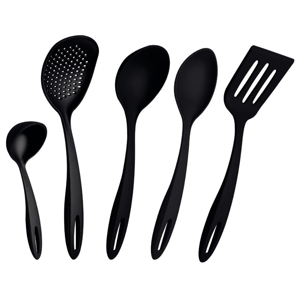 Kit Jogo de Utensílios 5 Peças Ability Preto + Jogo de Facas 9 Peças Plenus