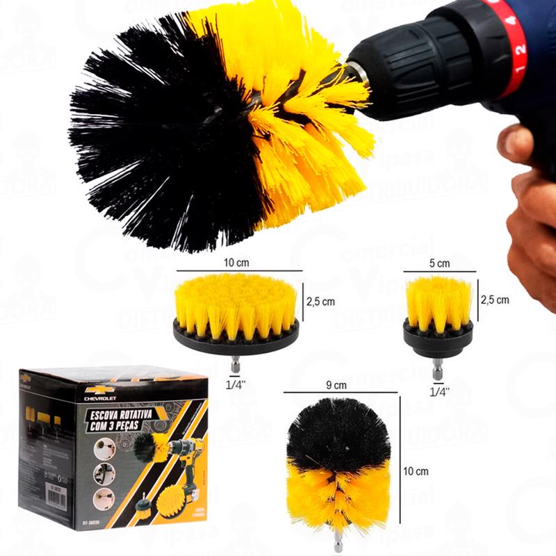 Kit Jogo Escovas Rotativa 3 Peças Para Limpeza Geral Casa Carro Moto Encaixe Parafusadeira Furadeira