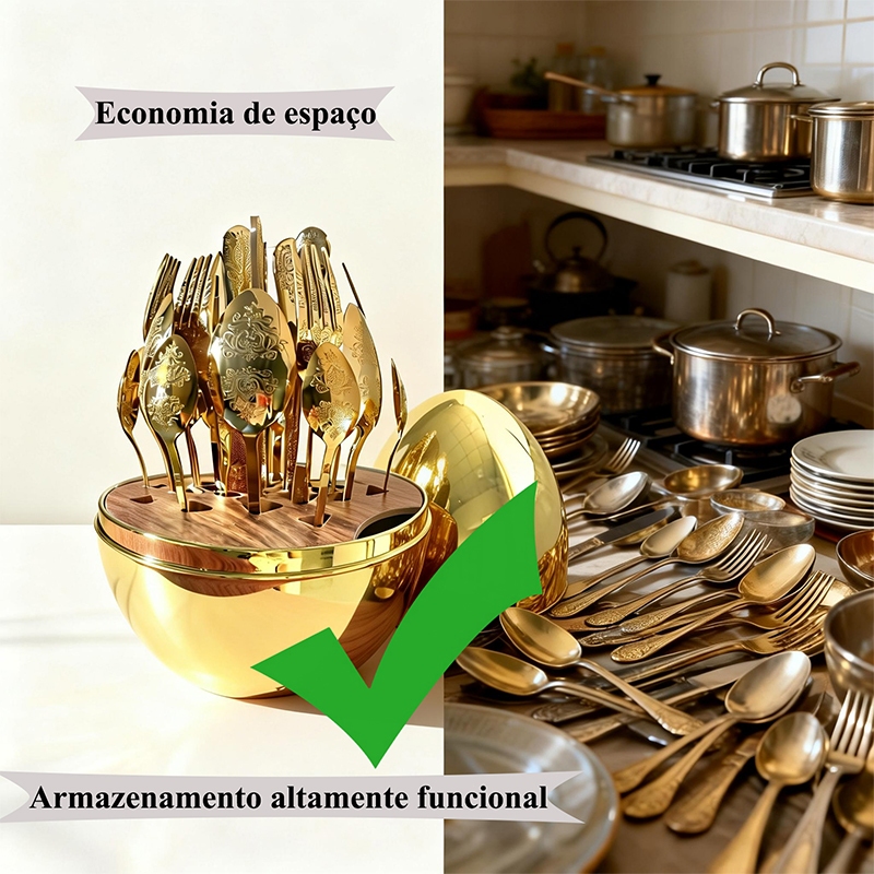 Kit Jogo Faqueiro Em Aço Inox 24 peças Bandeja Lisa para talheres oval Design em forma de ovo, Decore a sua casa