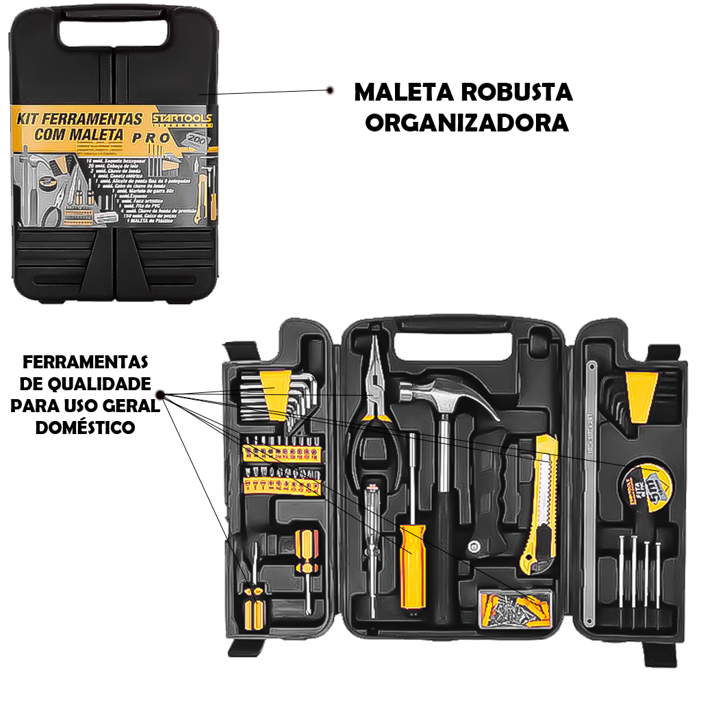 Kit Jogo Ferramentas 200 Peças Maleta Para Serviços Gerais Uso Doméstico Semi Profissional Completo