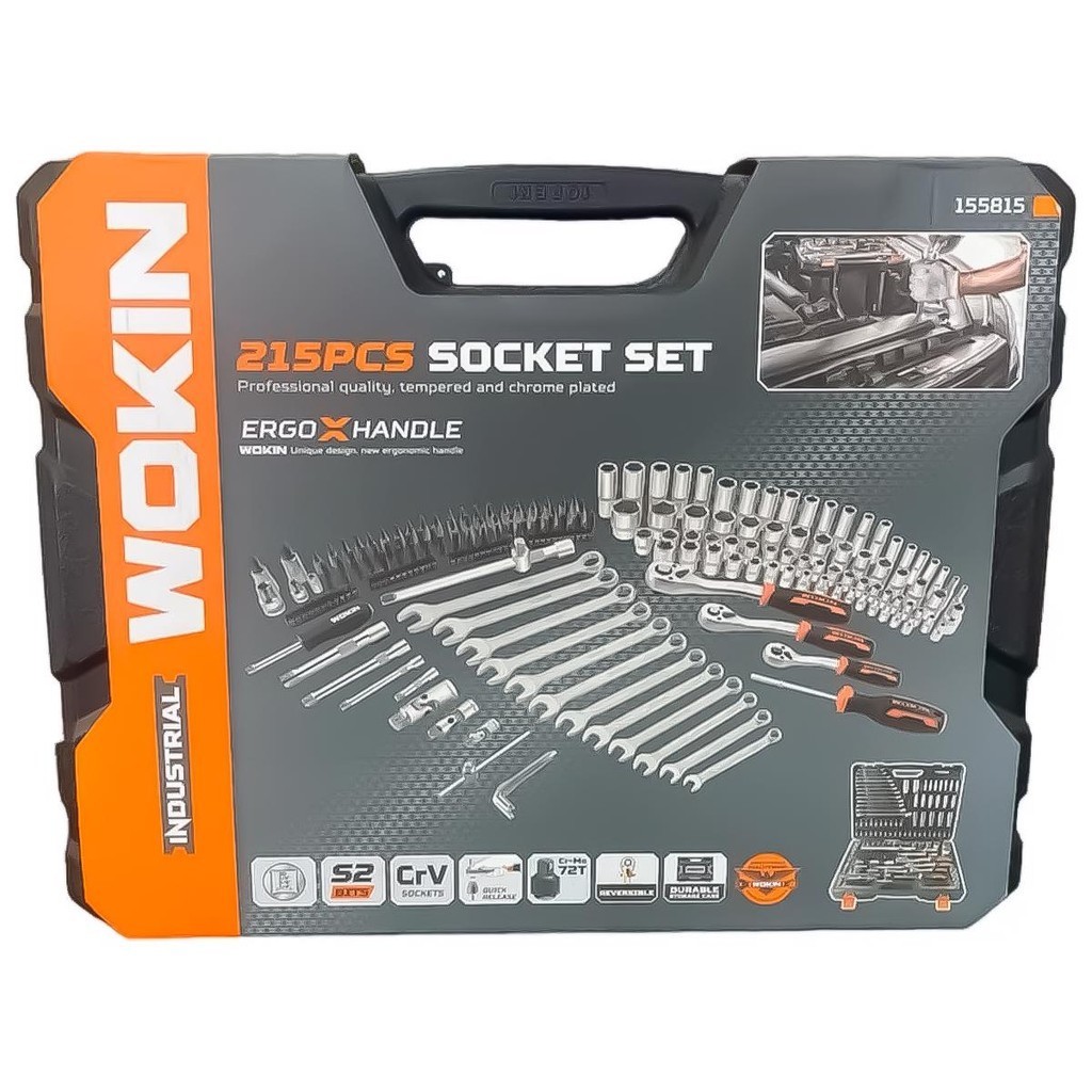 Kit Jogo Ferramentas 215 Peças Soquetes Mecânico Set Industrial Chaves Catraca Reversível Bits WOKIN
