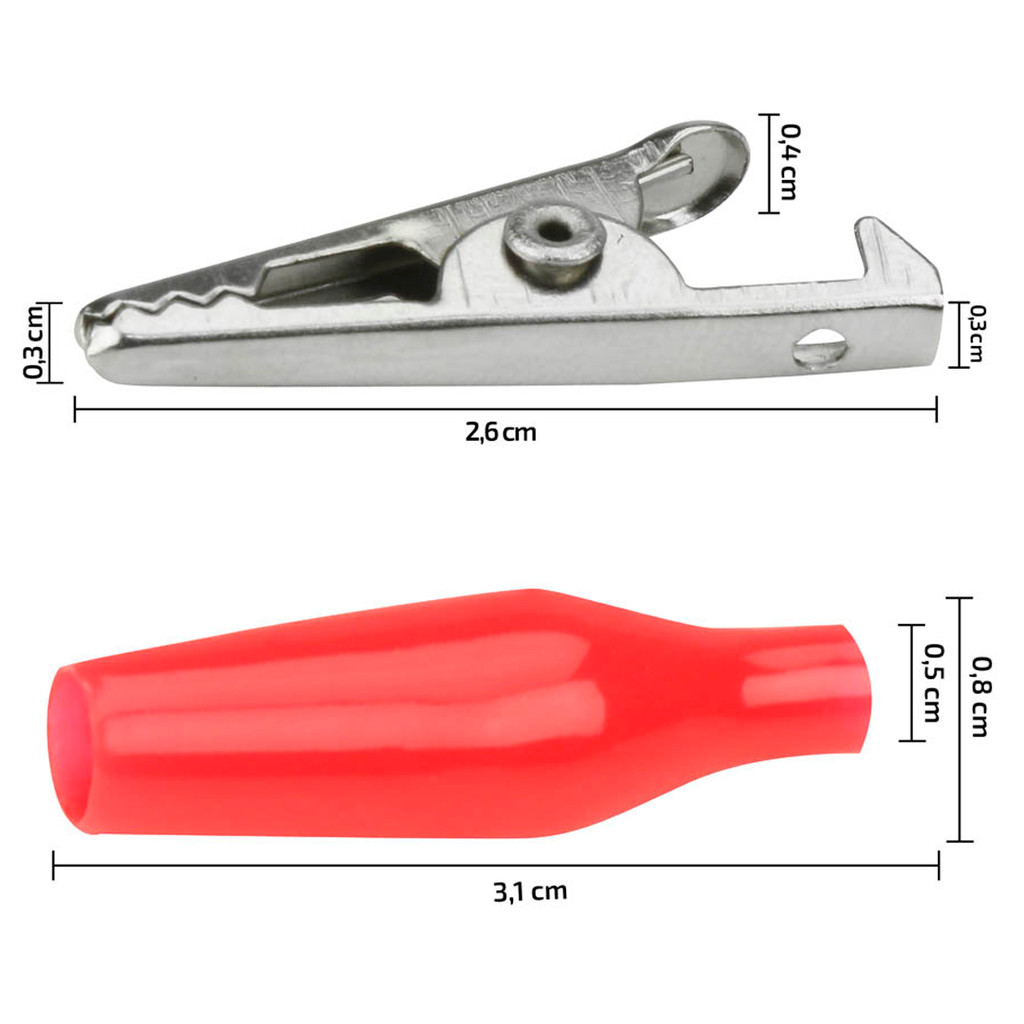 Kit Jogo Garra De Jacaré 5A Com Capa Pequena Vermelho 28mm Pacote Com 10 Unidades
