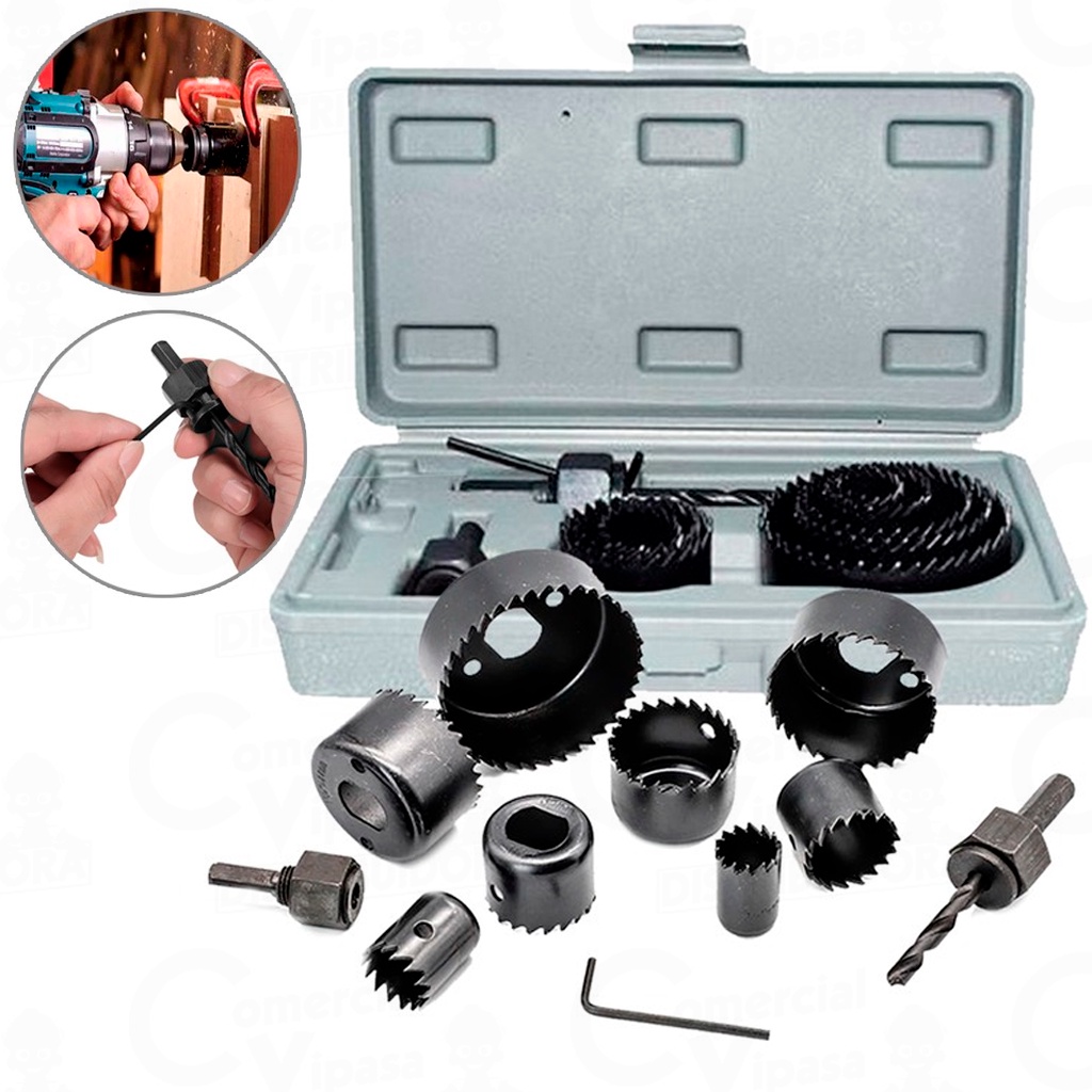 Kit Jogo Serra Copo Para Madeira Gesso e Pvc Com 11 Peças + Estojo Profissional Hobby