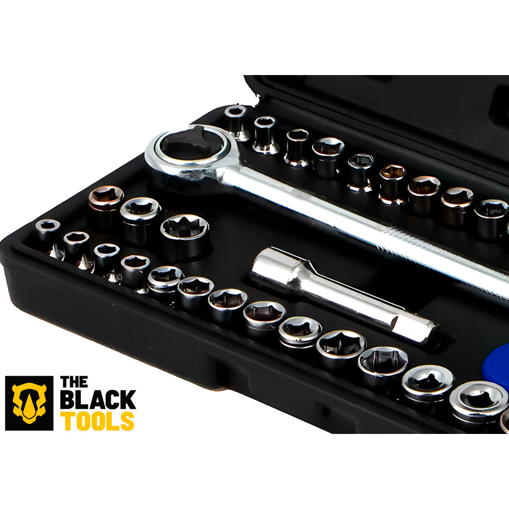 Kit Jogo Soquetes Sextavado Com Catraca 40 Pcs Reversível The Black Tools
