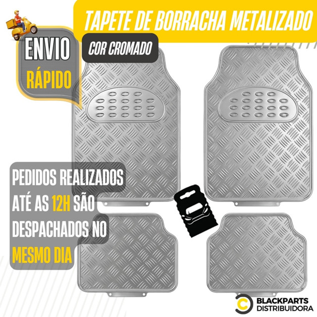 Kit Jogo Tapete Emborrachado Universal Metálico Carro Tuning Automotivo Cromad