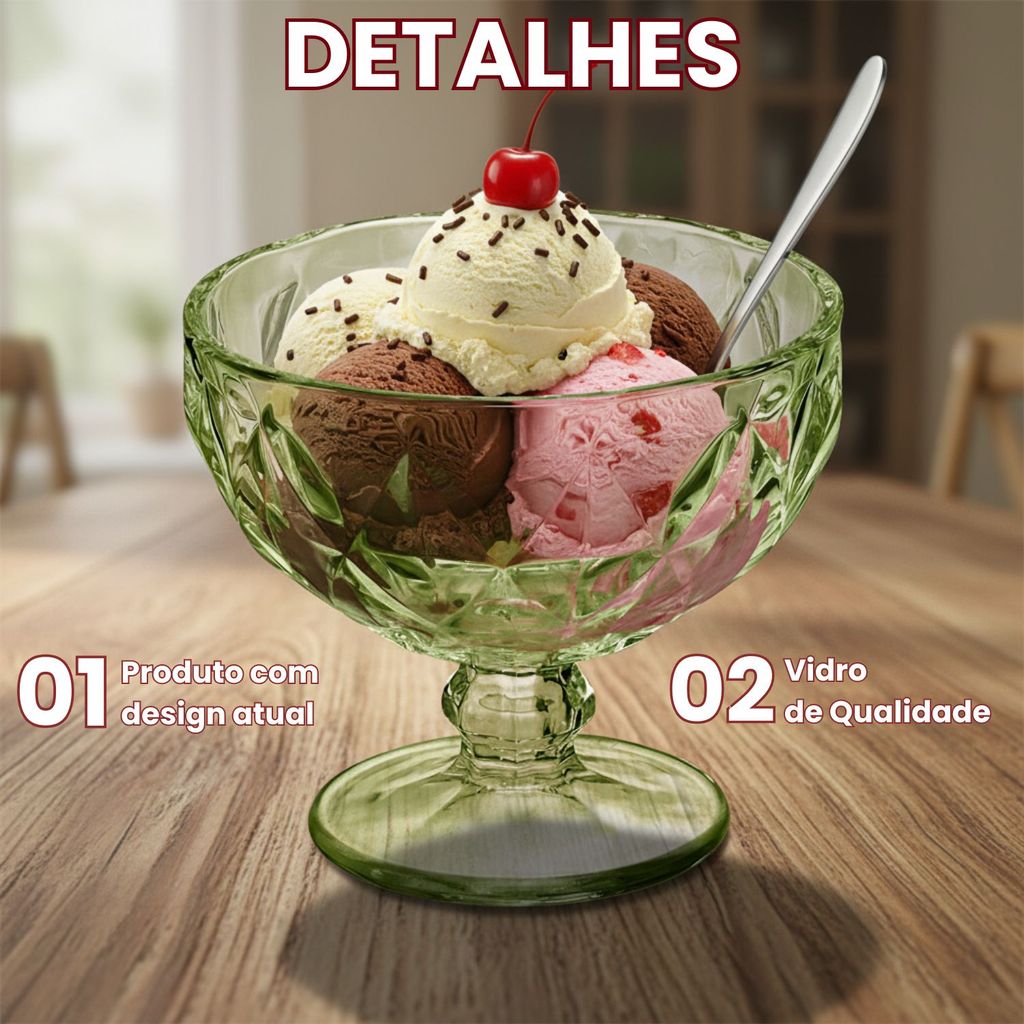 Kit Jogos 6 Taças Vidro Sobremesa Sorvete 380ml Diamante Luxo Verde