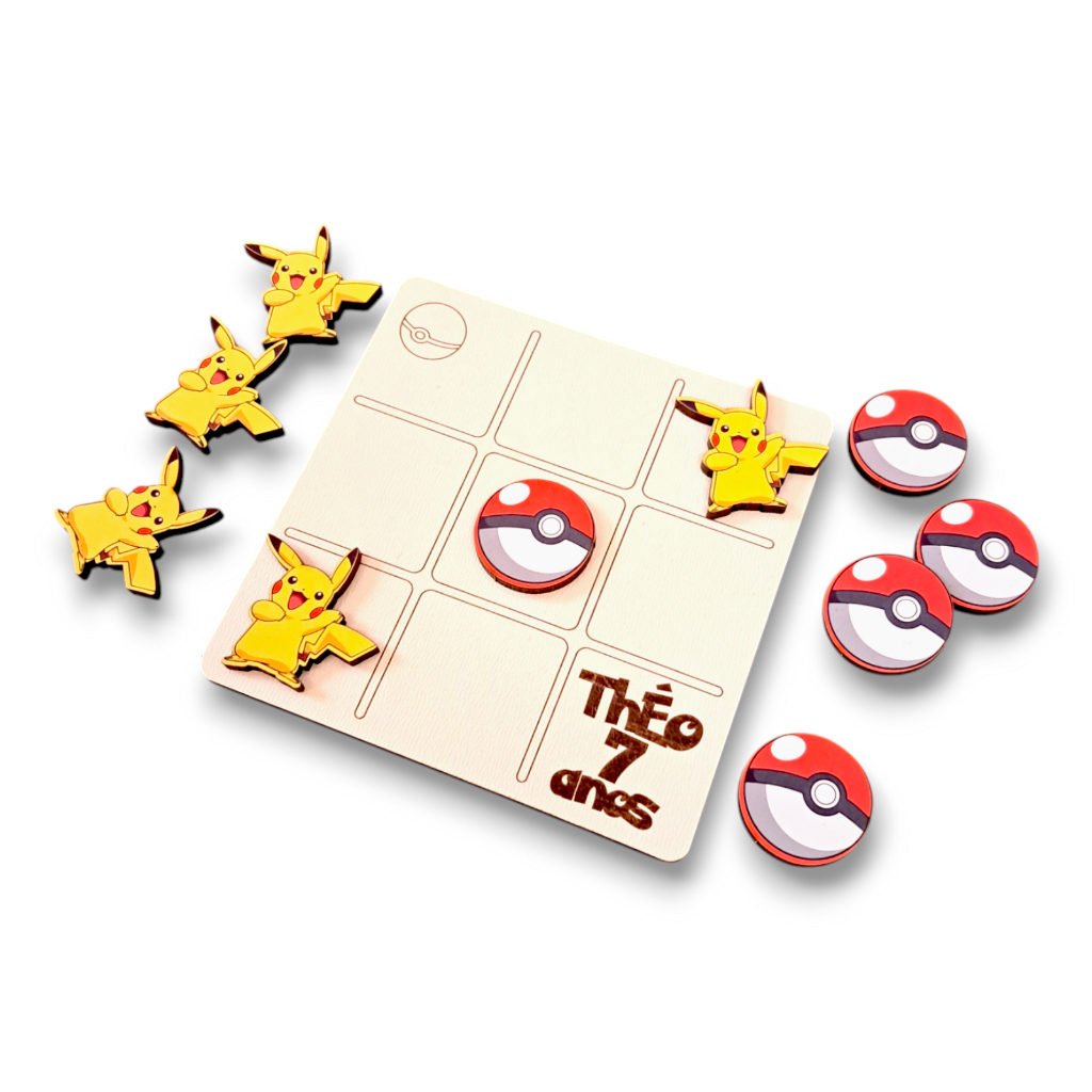Olá Bem Vindos!!! Somos a Overdrive LaserCut. Jogo da velha em MDF personalizado com o tema "Pokémon" Perfeito para lembrancinhas de aniversário, eventos escolares, igrejas, ação social... Tabuleiro cortaDescrição Bem-vindo(a) Somdo e gravado a laser com frente branca e verso cru. Pecinhas coloridas adesivadas em papel fotográfico com impressão de qualidade. Atenção! A longa exposição das peças coloridas à luz do sol ou artificiais intensas pode desbotar as cores. PERSONALIZAÇÃO COM NOME E IDADE DA CRIANÇA. Nos envie as informações para personalização logo após a compra. Caso não conseguirmos contato enviaremos os tabuleiros sem personalização, somente com o logo do tema. EMBALADOS EM SAQUINHOS INDIVIDUAIS! Esse é um dos diferenciais dos nossos joguinhos. Conteúdo: Kit com joguinhos contendo 1 tabuleiro e 10 peças para jogar cada. Não é o tema que procura? Fale com a gente no campo de perguntas. Ficaremos felizes em atendê-lo(a). O MDF é sustentável! Material produzido à partir de fibras de madeira provenientes de reflorestamento e resina sintética, com menor impacto ambiental no processo produtivo. Medidas: Tabuleiro: 12 x 12 cm Peças: 3cm cm em média Atenção: Crianças menores de 3 anos devem ser supervisionadas ao brincar com os joguinhos, pois contém peças pequenas, Materiais: - MDF 3mm frente branca e verso cru - MDF 3mm cru adesivado Overdrive LaserCut