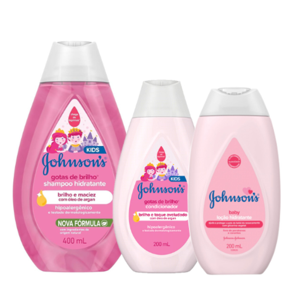 KIT CONTÉM: 1 SHAMPOO GOTAS DE BRILHO 400ML 1 CONDICIONADOR GOTAS DE BRILHO 200ML 1 LOÇÃO HIDRATANTE 200ML Shampoo Johnson's Baby Gotas De Brilho é um tratamento hipoalergênico desenvolvido exclusivamente para um cuidado especial aos cabelos dos baixinhos. Limpa perfeitamente o couro cabeludo eliminando toda sujeira e a oleosidade prejudicial aos fios capilares da criança. Desenvolvido com fórmula anti-frizz e com pH balanceado garantindo um banho tranquilo livre de ardência aos olhos do bebê. Condicionador Johnson's Baby Gotas De Brilho foi desenvolvido com fórmula leve e suave que não causa irritações aos olhos e ao couro cabeludo da criança. Seu aroma leve mantém fios perfumados por muito mais tempo. Resultado de cabelos macios, hidratados e cheios de vida como seu bebê merece Hidratante Johnson's Baby ajuda a proteger a pele do bebê do ressecamento com glicerina vegetal, livre de parabenos e corantes