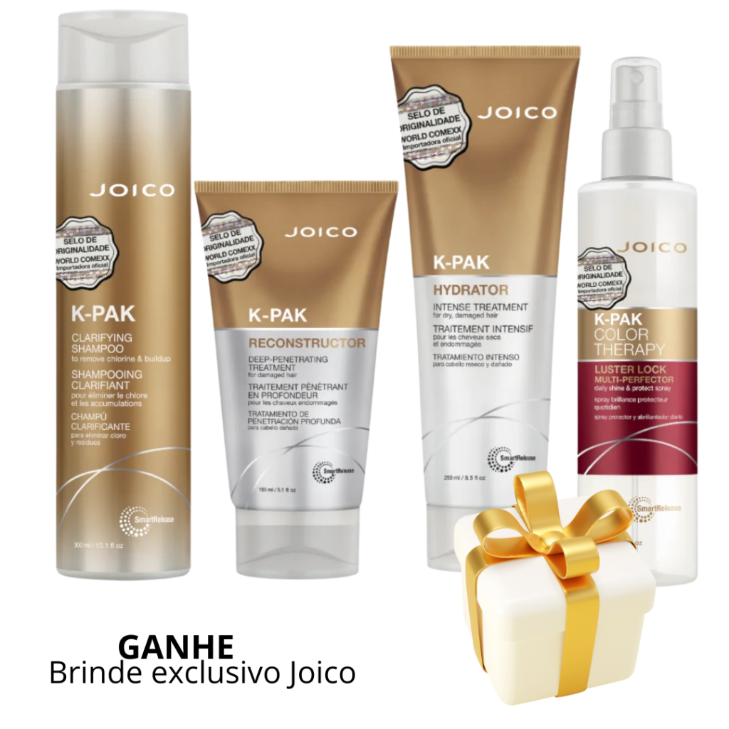 O Kit Joico Reconstrução Capilar K-PAK 2 oferece um protocolo completo de reconstrução para cabelos profundamente danificados ou fragilizados. Com a avançada tecnologia SmartRelease™, essa linha poderosa combina limpeza detox, reparação intensa, hidratação e proteção final em um tratamento único, capaz de restaurar força, brilho e maciez de dentro para fora. Produto 100 % original, lacrado de fábrica e com selo de autenticidade Joico, garantindo qualidade profissional e procedência confiável. ESPECIFICAÇÕES TÉCNICAS: Marca: Joico Linha: K-PAK Reconstrução Capilar Contém: K-PAK Clarifying Shampoo (Detox/Anti-Resíduo) K-PAK Deep Penetrating Reconstructor (Reconstrução Intensa) K-PAK Intense Hydrator (Hidratação Profunda) K-PAK COLOR THERAPY Luster Lock Multi-Perfector Spray (Finalizador Leave-in) Indicação: Cabelos quimicamente tratados, danificados ou extremamente secos Benefícios principais: Limpa profundamente e prepara o fio para receber tratamento Repara profundamente a estrutura capilar com queratina de alta concentração Restaura maciez, elasticidade e brilho intenso Finaliza com proteção contra frizz e calor, mantendo o movimento natural Garantia: Produto 100 % original, lacrado com selo de autenticidade Joico CUIDADOS / MODO DE USO: Shampoo Joico K-PAK Clarifying: Aplique nos cabelos molhados e massageie suavemente o couro cabeludo para remoção de impurezas. Enxágue bem. K-PAK Deep Penetrating Reconstructor: Após a limpeza, retire o excesso de água e aplique o reconstrutor no comprimento e pontas. Deixe agir por 5 minutos e enxágue. K-PAK Intense Hydrator: Utilize como máscara de hidratação após o reconstrutor, aplicando nos fios e deixando agir por 3-5 minutos antes de enxaguar completamente. K-PAK Luster Lock Multi-Perfector: Como finish, aplique o spray leave-in nos fios secos ou úmidos para proteção térmica, controle de frizz e brilho natural.