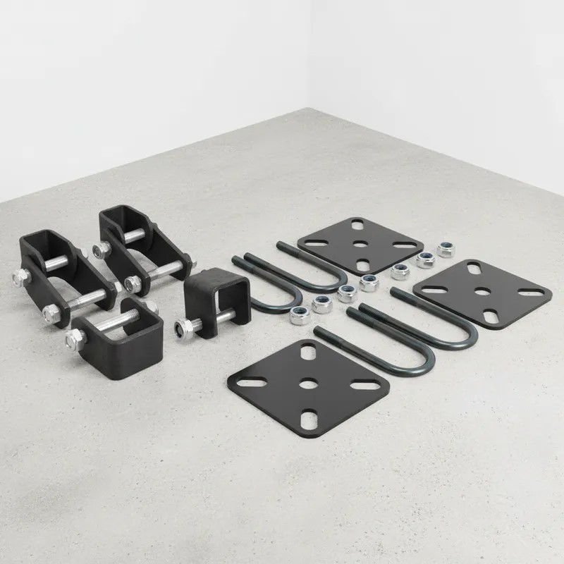 Kit Jumelos com Base e Grampos para Feixe de Molas 45mm 1500kg Kit reforçado para suspensão de carretinhas, reboques e trailers, indicado para montagem ou manutenção do feixe de molas de 45 mm. Fabricado em aço de alta resistência, oferece fixação segura, estabilidade e alta durabilidade mesmo sob carga. Algumas peças são fornecidas sem pintura para facilitar a soldagem e garantir melhor fixação após a instalação. Aplicações: Carretinhas Reboques leves e médios Trailers Carretas náuticas Carretas fazendinha Compatibilidade: Feixe de molas 45 mm Eixos de até 50 mm medida máxima do grampo Conteúdo do Kit: 4 grampos tipo U 50 x 120 mm rosca M10 8 porcas autotravantes M10 2 bases de mola reforçadas com 5 furos 2 jumelos completos para um eixo