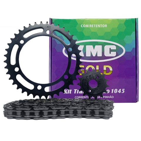 Kit Kmc Relacao Completo Nx 400 Falcon Coroa Pinhão e Corrente C/ Retentor + Coxim da Coroa