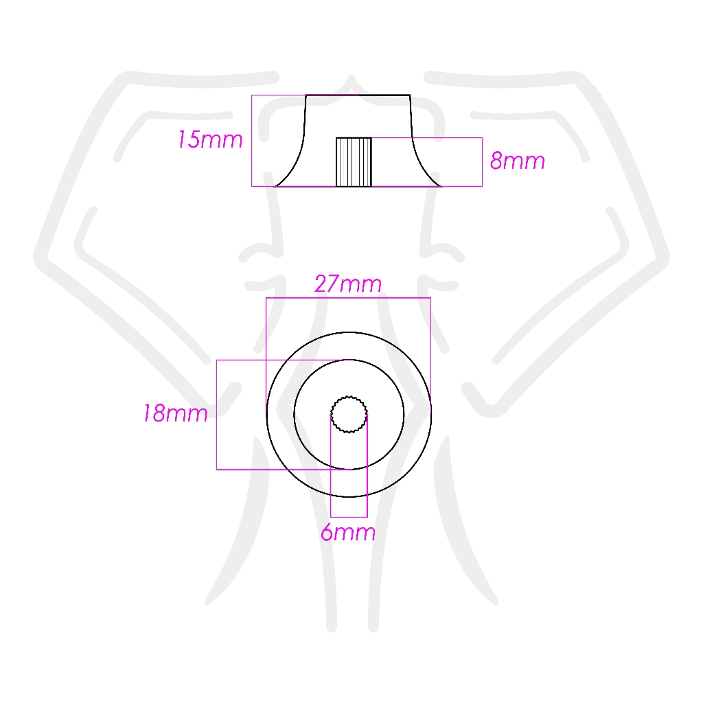 Os Knobs são botões de controle projetados para guitarra e baixo. Os knobs têm como função ajustar o tom e o volume de forma fácil e conveniente. Nesse modelo tem a etiqueta em aluminio no topo, e a impressão identificando TONE e VOLUME. O "Sino" possui o tradicional formato Top Hat que vem de fabrica em várias guitarras do mercado, o que os tornam perfeitos para serem utilizados para substituição de peças originais danificadas, customização ou construção de novos instrumentos já que o mesmo se encaixa em qualquer potenciômetro de eixo estriado que tenha o eixo de 6 mm Ø. Especificações: - Material: Acrilico + Etiq TONE Metal - Cor: PRETO + Topo Metal Cinza - Diâmetro: 27 mm - Altura: 15 mm - Diâmetro interno: 6 mm estriado - Diâmetro superior: 18 mm Embalagem com 2 (duas) unidades TONE + 2 (duas) unidades VOLUME Compatível com Potenciômetros CTS/Alpha/Gotoh. Produto de excelente qualidade, ELEPHANT GUITAR PARTS Devido à diferença entre monitores, a imagem pode não refletir a cor real do item.