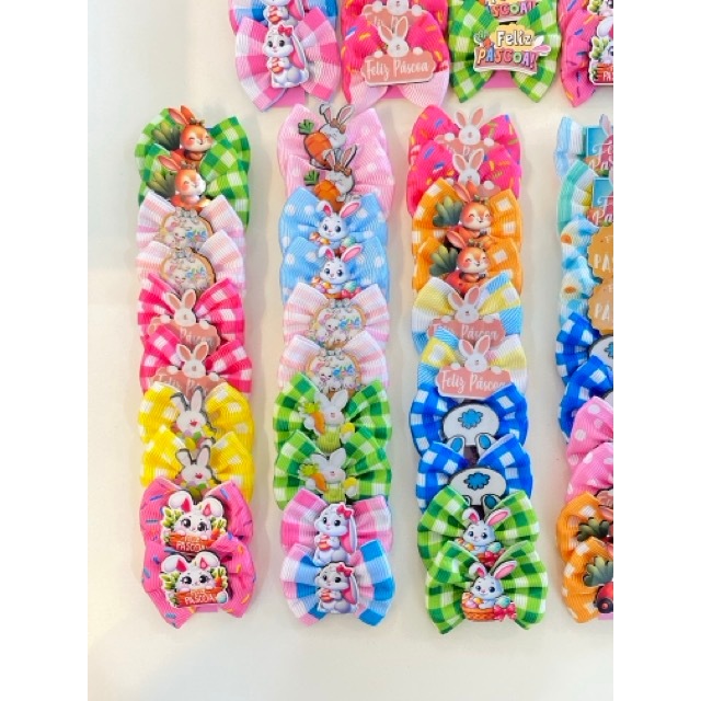 Kit de laços pet para páscoa. Laços coloridos, com apliques a prova d'agua e em pares. S!ao confeccionados em Gorgorão ou Cetim de alta qualidade. Tamanho M. Medida de 3,5X4cm. Transforme a Páscoa do seu pet em uma celebração cheia de estilo com o Laço Pet Páscoa da Luffy Laços. Este conjunto contém 40 unidades de laços variados, feitos em gorgorão e cetim, garantindo durabilidade e um toque de elegância. Cada laço possui 4 cm de comprimento e 3 cm de largura, ideal para pets de diferentes tamanhos. Os laços são perfeitos para ocasiões especiais, como festas e encontros, ou simplesmente para dar um charme extra ao dia a dia do seu animal de estimação. Com uma variedade de cores e padrões, você pode combinar os laços com diferentes looks, tornando seu pet o centro das atenções. Além de serem um acessório adorável, os laços são fáceis de colocar e retirar, proporcionando conforto ao seu pet. Invista na alegria e no estilo do seu companheiro com este conjunto que une qualidade e beleza em cada detalhe.
