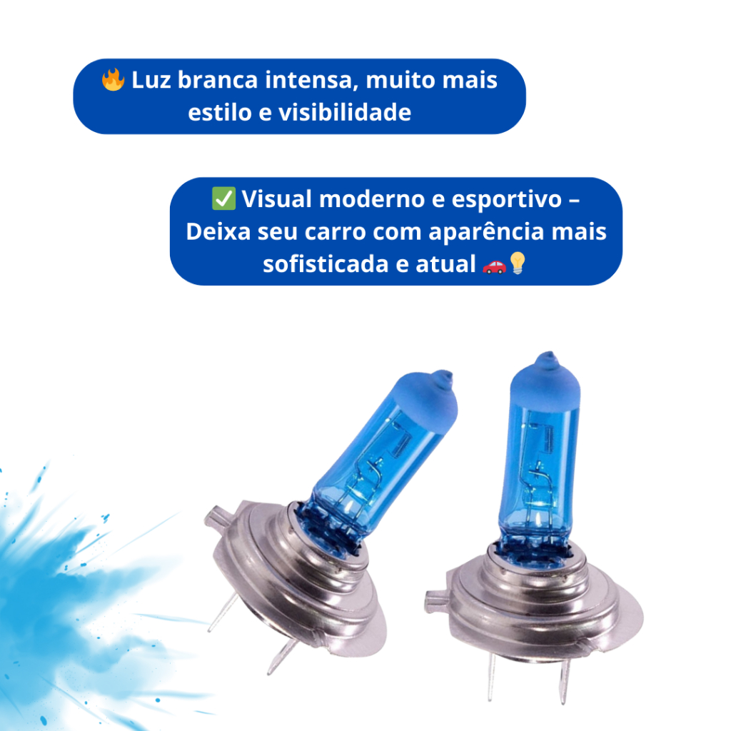 Kit Lâmpadas Farol Super Branca – Peugeot 206 / 207 Dê mais estilo e segurança ao seu Peugeot com este kit de lâmpadas super branca! Ideal para farol alto e baixo, com luz mais clara e visual moderno. ✅ Compatível com Peugeot 206 e 207 ✅ Maior iluminação – luz branca intensa, mais próxima da luz do dia ✅ Visual esportivo e moderno ✅ Fácil instalação – encaixe original, sem adaptações ✅ Melhor visibilidade à noite e em dias de chuva ✅ Produto novo com envio rápido e seguro 📦 Conteúdo da Embalagem: 2 Lampada H7 farol baixo 2 Lampada H1 farol alto 2 Lampada T10 meia luz