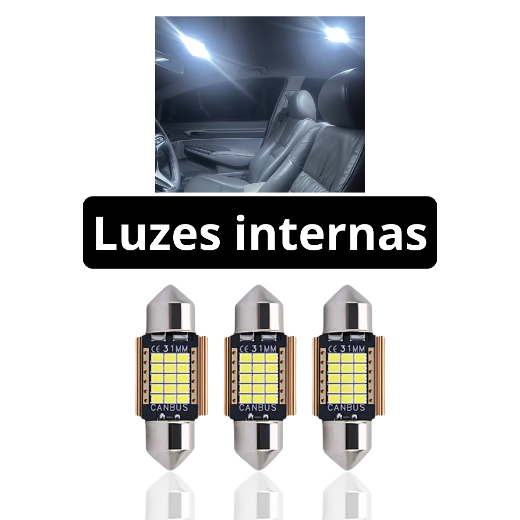 KIT Lâmpada Led Honda Civic 2001 a 2013 ( Porta Luvas Porta Malas Placa Farolete Ré Teto) T10 T20 Torpedo 31mm