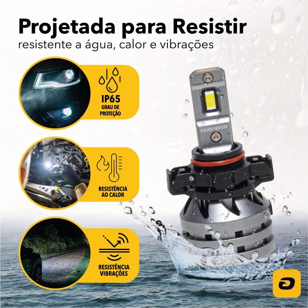 Kit Lâmpada Led TX5 PRO H16 Características: Tecnologia LED CSP 3570 (Última geração de Led Koreano) Mais Compacto Fácil instalação Corpo em alumínio de aviação 6063 Durabilidade até 10 vezes mais Dupla Refrigeração Driver Canbus Externo Peça 20% menor 6000k Iluminação branca fria Aplicação: Farol alto e farol baixo. Descrição: Você busca o que há de mais moderno para seus faróis? O Kit Lâmpada Led Tarponn TX5 PRO H16 é ideal para você! Este produto, exclusivo da linha PRO Tarponn, tem todo o seu corpo em alumínio de aviação e, além disso, possui a última geração de LED Koreano, o CSP 3570, tecnologia hi-tech com a maior qualidade do mercado, que aumenta a intensidade luminosa. O produto é resistente a vibrações e ao calor, compacto, 20% menor que os demais, vai com Driver Canbus externo que ajuda na refrigeração e diminui possíveis pontos de falha. O kit vem com iluminação na cor Branca Fria (6000k), tem durabilidade de até 10 vezes mais, uma super eficiência energética e fluxo luminoso de 5500 lumens. Aplicável para farol alto e baixo. Ficha técnica: Temperatura de cor: 6000K Potência: 50W Tensão: 12 V Fluxo luminoso: 5500 lumens/peça Liga de alumínio de aviação 6063 Encaixe: H16 Grau de proteção: IP 65 Resistência: Vibrações e ao calor Temperatura de Trabalho: -40° ~ +80°C Dissipador de Calor: Duplo, Alumínio de Aviação e Cooler Linha de Corte (+ Segurança) Garantia: 1 ano Linha: PRO