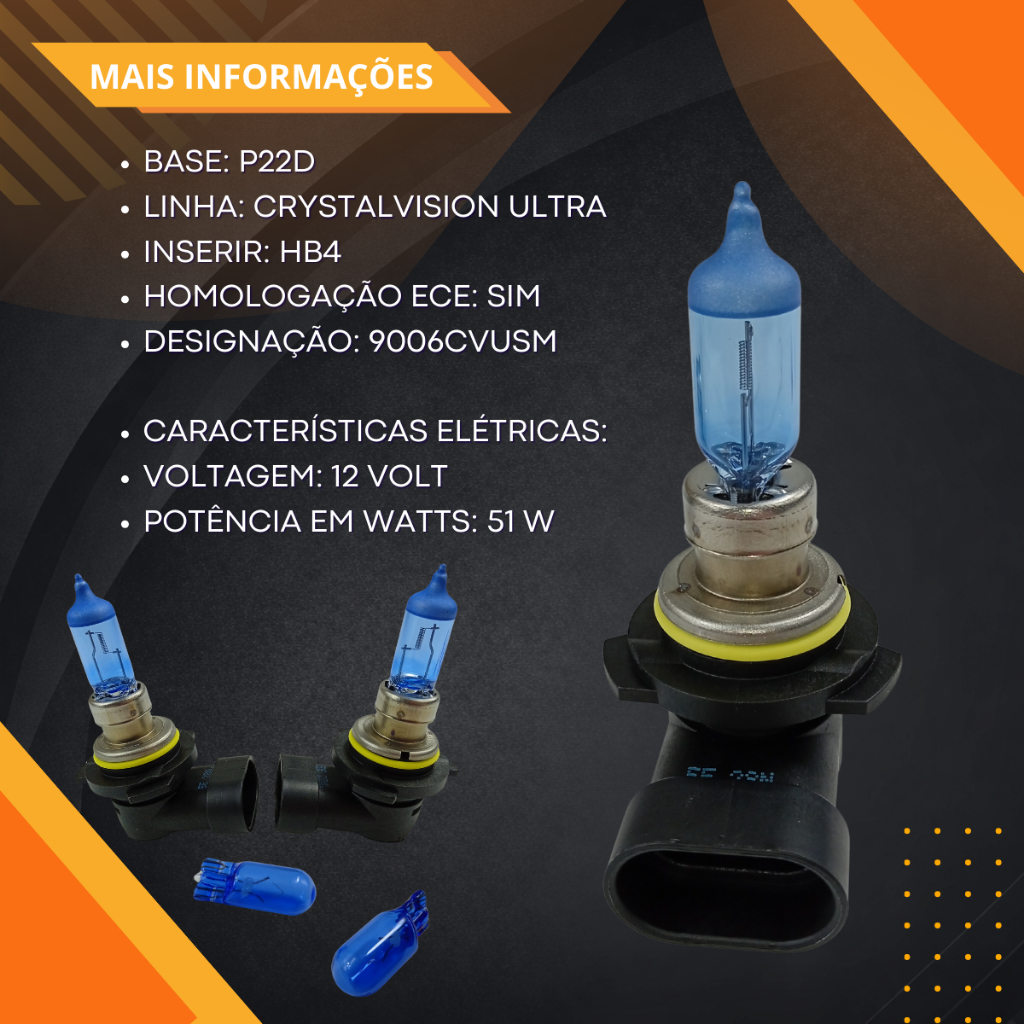 | Kit Lâmpada Philips HB4 9006 Crystal Vision Ultra 4300K + W5W T10 1... este produto | R$ 149,90 | 25% | 5.0/5 | 6 |