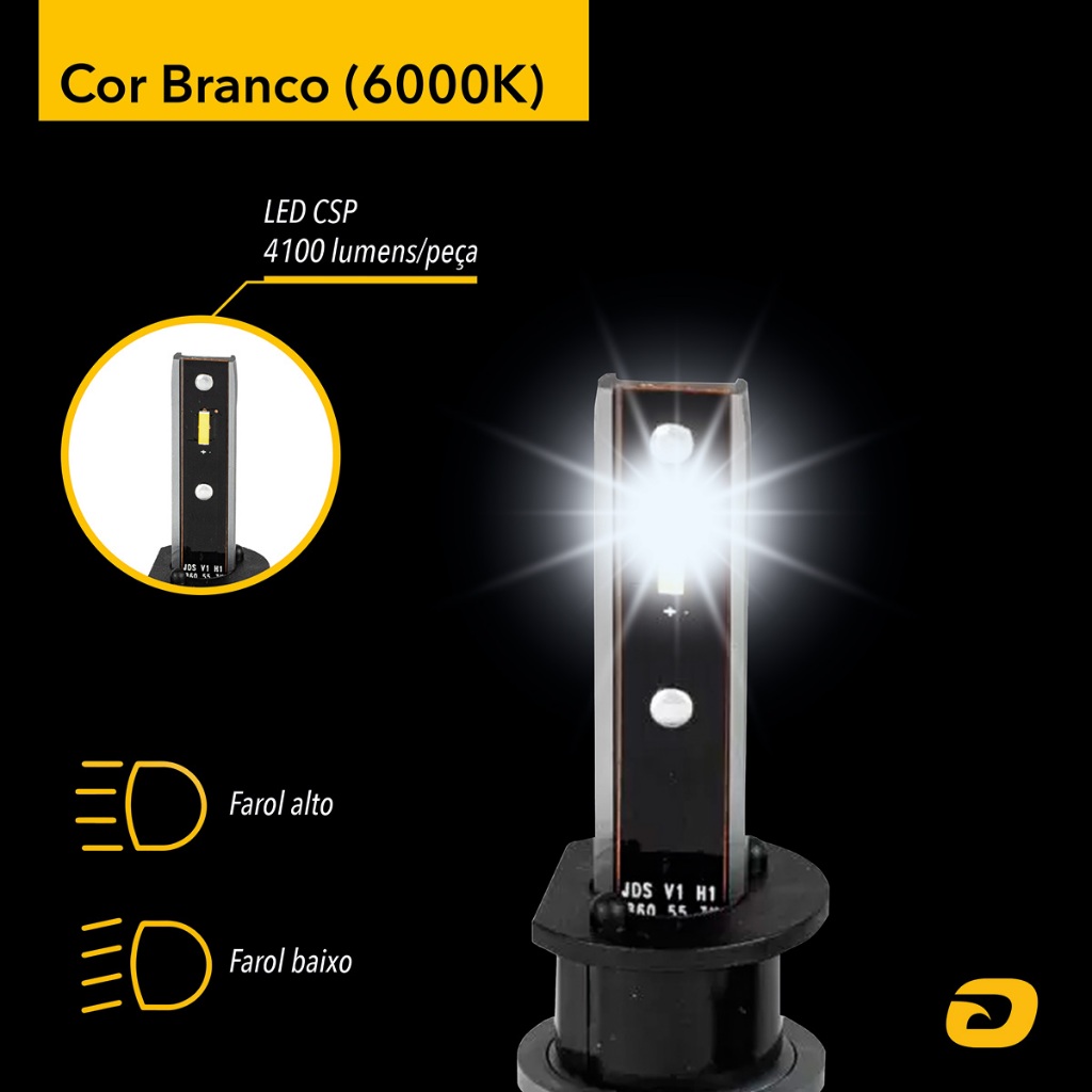 KIT LÂMPADA LED SKY 6K H1 PREMIUM CARACTERÍSTICAS: · Tecnologia LED CSP · Corpo em alumínio de aviação · Driver Incorporado · Acabamento galvanizado e cromado · Dissipador de calor em alumínio de aviação · 6000k · Iluminação branca fria · Aplicação: Farol alto e farol baixo. FICHA TÉCNICA: · Temperatura de cor: 6000K · Potência: 40W · Tensão: 12 V · Fluxo luminoso: 4100 lumens/peça · Dissipador de calor: Liga de alumínio de aviação 6063 · Encaixe: H1 · Grau de proteção: IP 65 · Temperatura de Trabalho: -40° ~ +80°C · Resistência: Vibrações e ao calor · Linha de Corte (+ Segurança) · Garantia: 1 ano · Linha: PREMIUM CONTEÚDO EMBALAGEM: 1 PAR Lâmpada LED SKY 6K H1 Mega GT - Especialista em Acessórios Automotivos e Utilidades Na Mega GT, somos especialistas em Acessórios Automotivos e Utilidades. Buscamos sempre oferecer a melhor opção com preço justo em todas as suas compras. Todos os produtos: • São Produtos Originais • Acompanham Nota Fiscal • Enviamos em Até 24 Horas • 1 Ano de Garantia DÚVIDAS FREQUENTES: • Os produtos são originais? Sim, todos os nossos produtos são originais e de alta qualidade. • Temos pronta entrega? Sim, todos os nossos produtos estão disponíveis em estoque para envio imediato. Despachamos em até 24 horas. • Emitem nota fiscal? Sim, todos os nossos produtos acompanham nota fiscal, garantindo a sua segurança e a conformidade nas transações comerciais. • Possui garantia? Sim, os nossos produtos possuem garantia de 1 Ano. A sua satisfação é a nossa prioridade. *Imagens meramente ilustrativas