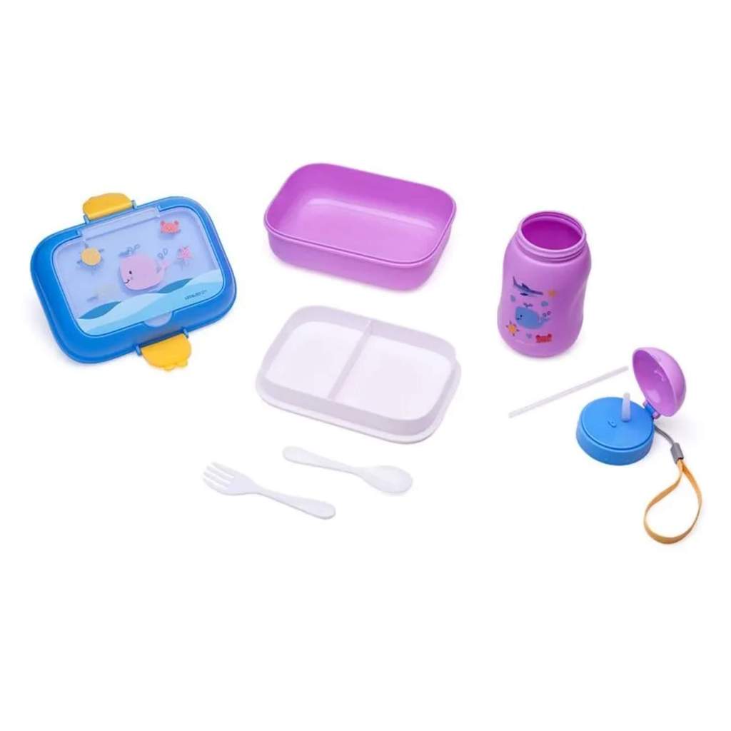 Kit Lanche Fundo do Mar com Garrafa Plástica 500Ml + Marmita 700Ml Leo&Leo Leonora - 97830