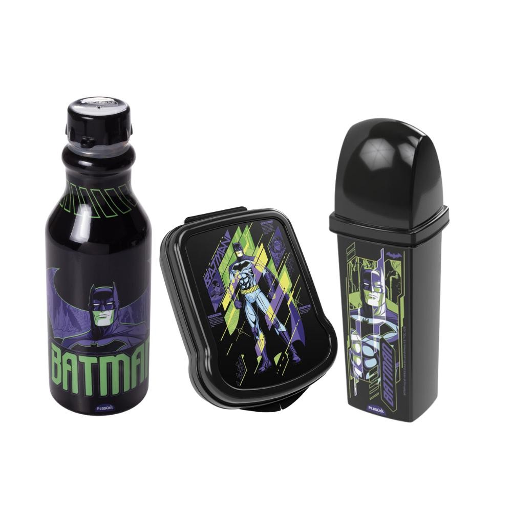 Kit Lancheira Batman 1 Garrafa 1 Sanduicheira 1 Dental Case Plasútil