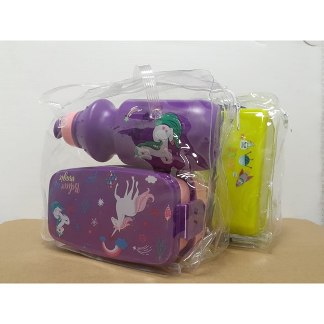 Esse é um item completo para o almoço ou lanche das crianças, já que o conjunto vem com todas as peças necessárias para armazenar líquidos e comidas. A marmita tem um tamanho ideal para a refeição, além de ser super adaptável para a necessidade de carregar mais de uma coisa, por ter dois andares dividos, tornando possivel o transporte de alimentos ou temperaturas diferentes. Conta com uma tampa que veda muito bem todo o conjunto, mas ao mesmo tempo é super fácil de abrir pelos lados, dando uma autonomia para as crianças. E para completar, todo o conjunto acompanha uma garrafa com tampa de bico que tem material e vedação em silicone, que faz com que os líquidos não vazem e tem um tamanho ideal para consumo de sucos. Características: Completo e organiza os alimentos Especificações: Material- Plástico Peso- 0,160 kg Marmita: Altura- 9 cm Largura- 7,5 cm Comprimento- 17 cm Garrafa: Altura- 18 cm Largura- 6 cm Comprimento- 6 cm Garantia de devolução da loja.