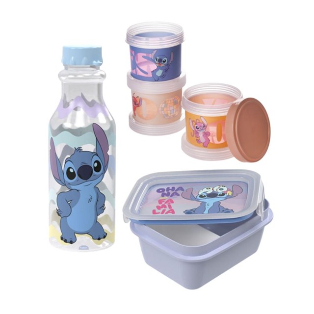 Kit Lancheira Stitch 1 Pote Marmita com Divisória 1 Garrafa 3 Organizadores Plasútil