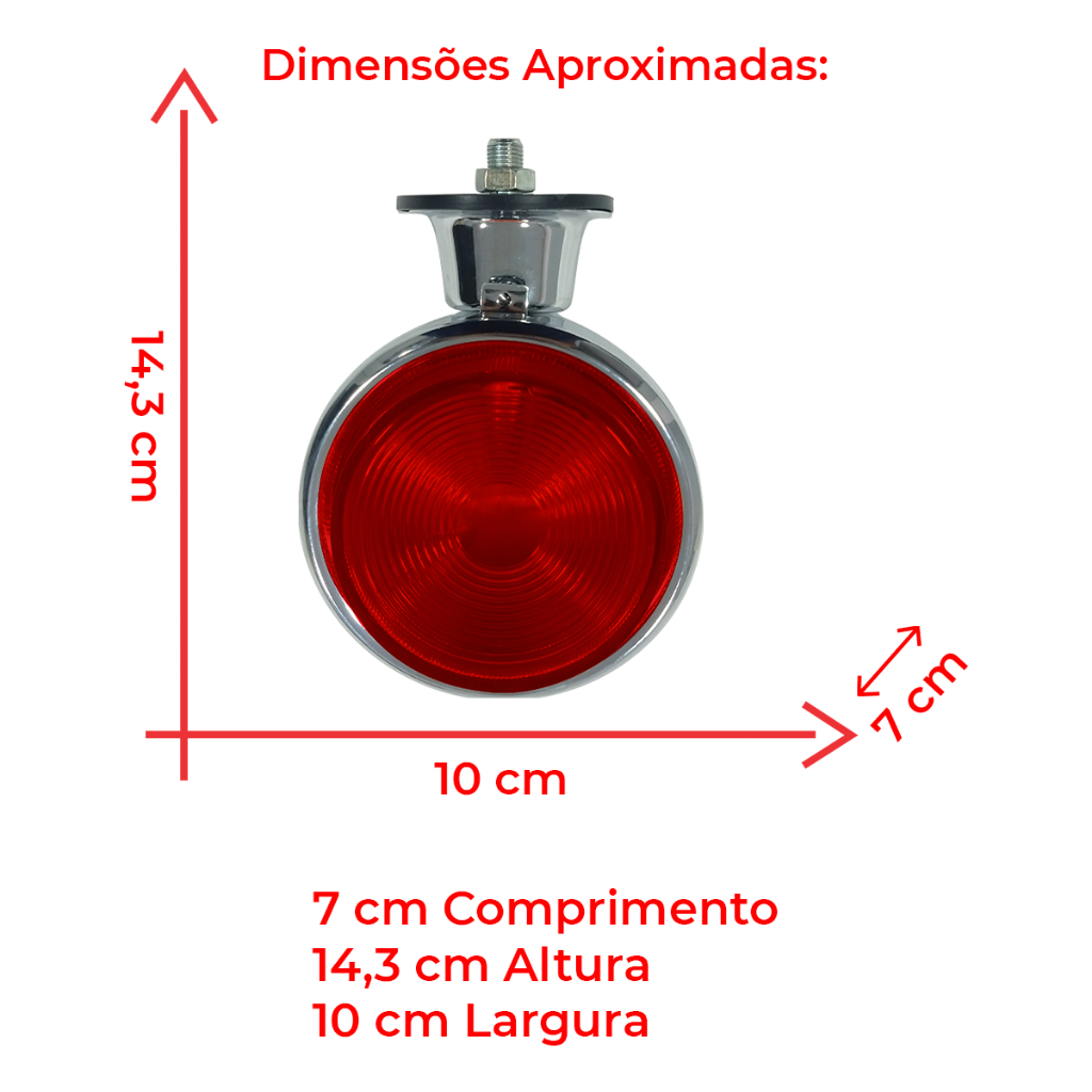 Kit Lanterna Traseira Sinaleira Foguinho Bojuda 3 Maria Modelo Universal com Lente Bolha (Saltada) na Cor Vermelho com Suporte e Base de Ferro Cromada Compatível com Caminhões, Carretas e Veículos no Geral - Modelos de Aplicação: - Caminhões - Carretas (Randon, Facchini, Noma, Guerra, Rodotécnica, etc...) - Implementos - Trailers - Reboques - Tratores - Baús - Adaptações - Veículos no Geral - Dimensões Aproximadas: 7cm de comprimento X 10cm de largura X 14,3cm de altura - Ficha Técnica: - Selecione a quantidade desejada nas variações - Não possui Lado - Lente fabricada em acrílico e carcaça em ferro - Enviado na cor Vermelho - Antes de efetuar a compra consultar o valor do frete - Frete por conta do comprador - Não nos responsabilizamos pela má instalação ou mau uso do produto, faça a instalação com profissionais especializados. - Atenção: As compras realizadas em nome de Pessoa Jurídica estão sujeitas a cobrança de ICMS, conforme Protocolo ICMS 41, de 4 de Abril de 2008. Caso você tenha dúvidas sobre o percentual a ser aplicado, consulte a Cláusula Segunda, §1° do referido Protocolo. - Em caso de dúvidas use o campo de Perguntas. Obs: Peças não genuínas. Fotos meramente Ilustrativas. A informação linha é somente de caráter referencial. O produto que comercializamos é adaptável aos caminhões e linhas informados acima. O código original mencionado é somente de caráter referencial para informar a similaridade de aplicação do código Ameriparts Automotive com o mesmo. Caso tenha dúvidas quanto a utilização deste produto, favor consulte-nos pelo campo de perguntas. CÓD. REFERÊNCIA: 010176 - 011245 - 011246