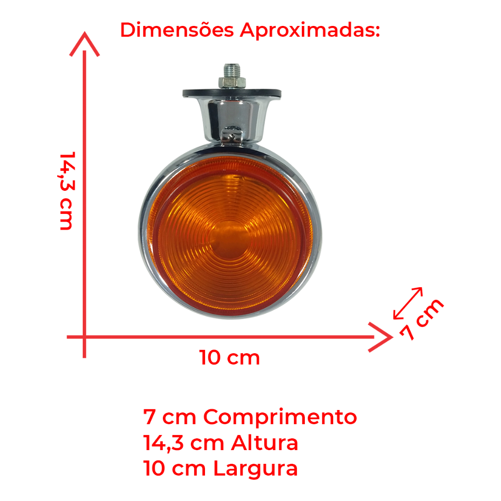 Lanterna Traseira Sinaleira Foguinho Bojuda Maria Modelo Universal com Lente Bolha (Saltada) na Cor Âmbar (Amarelo Alaranjado) com Suporte e Base de Ferro Cromada Compatível com Caminhões, Carretas e Veículos no Geral - Alguns Modelos De Aplicação: - Caminhões - Carretas (Randon, Facchini, Noma, Guerra, Rodotécnica, etc...) - Implementos - Trailers - Reboques - Tratores - Baús - Adaptações - Veículos no Geral - Dimensões aproximadas: Comprimento 10cm x Largura 7cm x Altura 14,3cm - Lente fabricada em Acrílico - Carcaça fabricada em Ferro - Lente enviada na cor Âmbar (Amarelo Alaranjado) - Antes de efetuar a compra consultar o valor do frete - Frete por conta do comprador - Não nos responsabilizamos pela má instalação ou mau uso do produto, faça a instalação com profissionais especializados. - Atenção: As compras realizadas em nome de Pessoa Jurídica estão sujeitas a cobrança de ICMS, conforme Protocolo ICMS 41, de 4 de Abril de 2008. Caso você tenha dúvidas sobre o percentual a ser aplicado, consulte a Cláusula Segunda, §1° do referido Protocolo. - Em caso de dúvidas use o campo de Perguntas. Obs: Peças não genuínas. Fotos meramente Ilustrativas. A informação linha é somente de caráter referencial. O produto que comercializamos é adaptável aos caminhões e linhas informados acima. O código original mencionado é somente de caráter referencial para informar a similaridade de aplicação do código Ameriparts Automotive com o mesmo. Caso tenha dúvidas quanto a utilização deste produto, favor consulte-nos pelo campo de perguntas. CÓD. REFERÊNCIA: 011202 - 011238