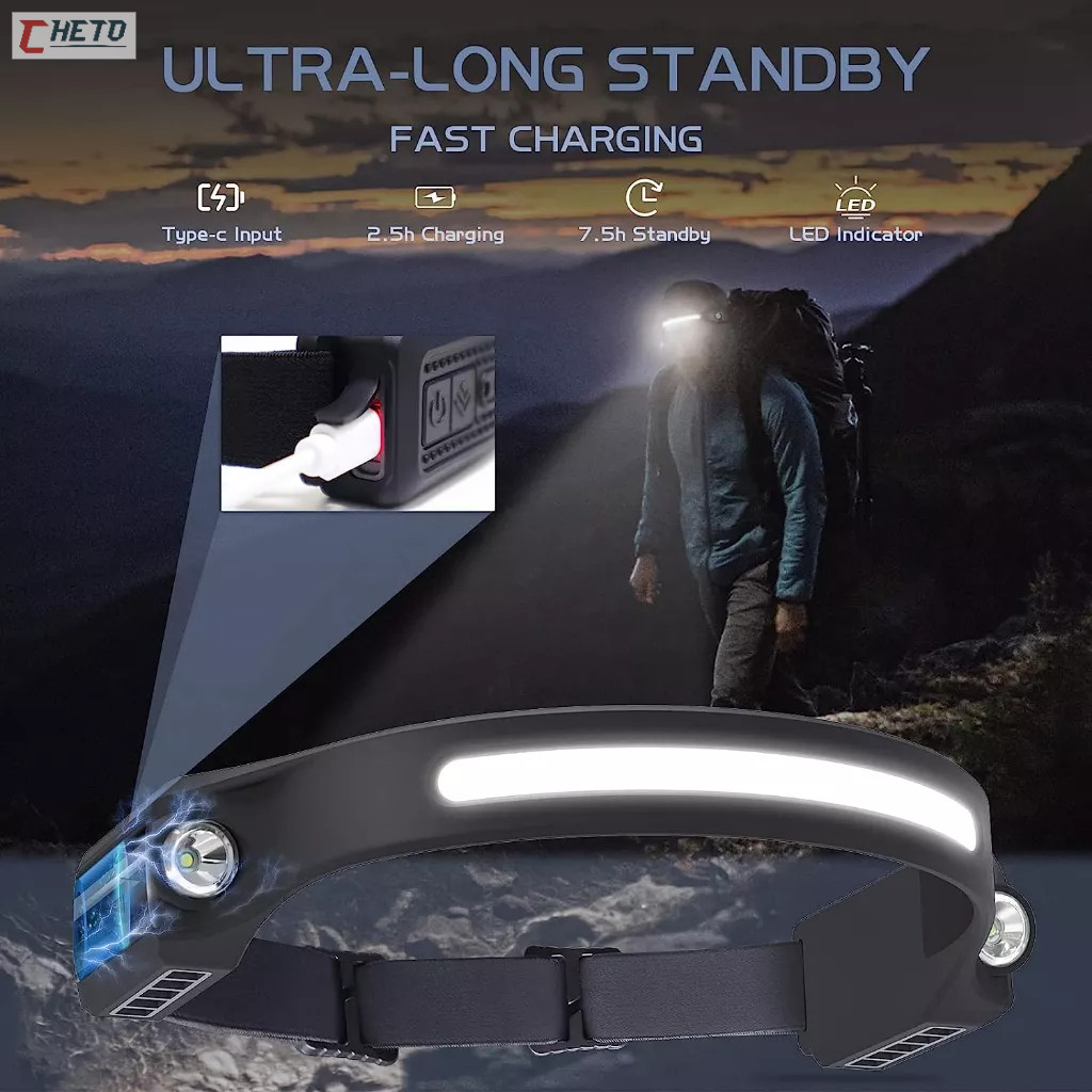 KIT Lanterna de Cabeça Recarregável Led Corpo Motion Camping Torch Light Lamp Com Usb