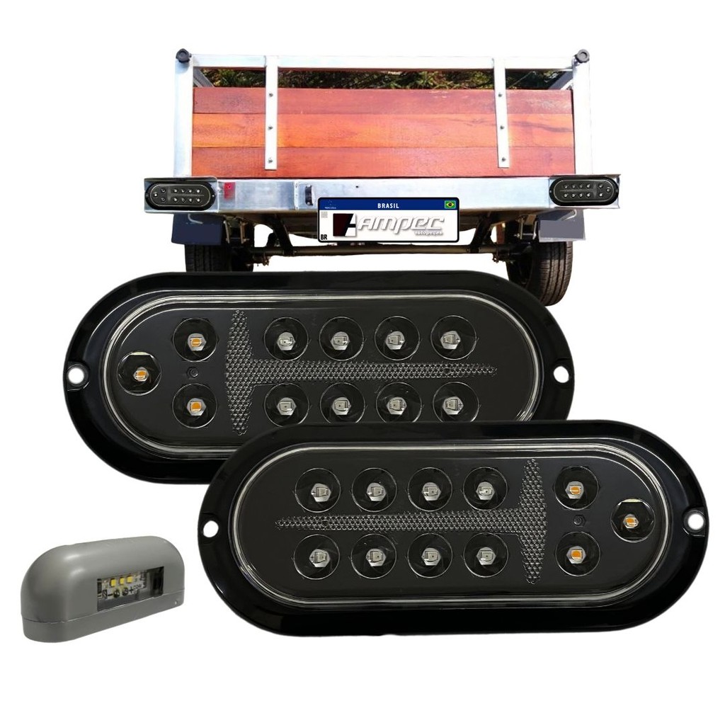 Kit Lanterna Traseira LED Carretinha Reboque Cristal Meia Luz Pisca Freio Luz Placa Universal