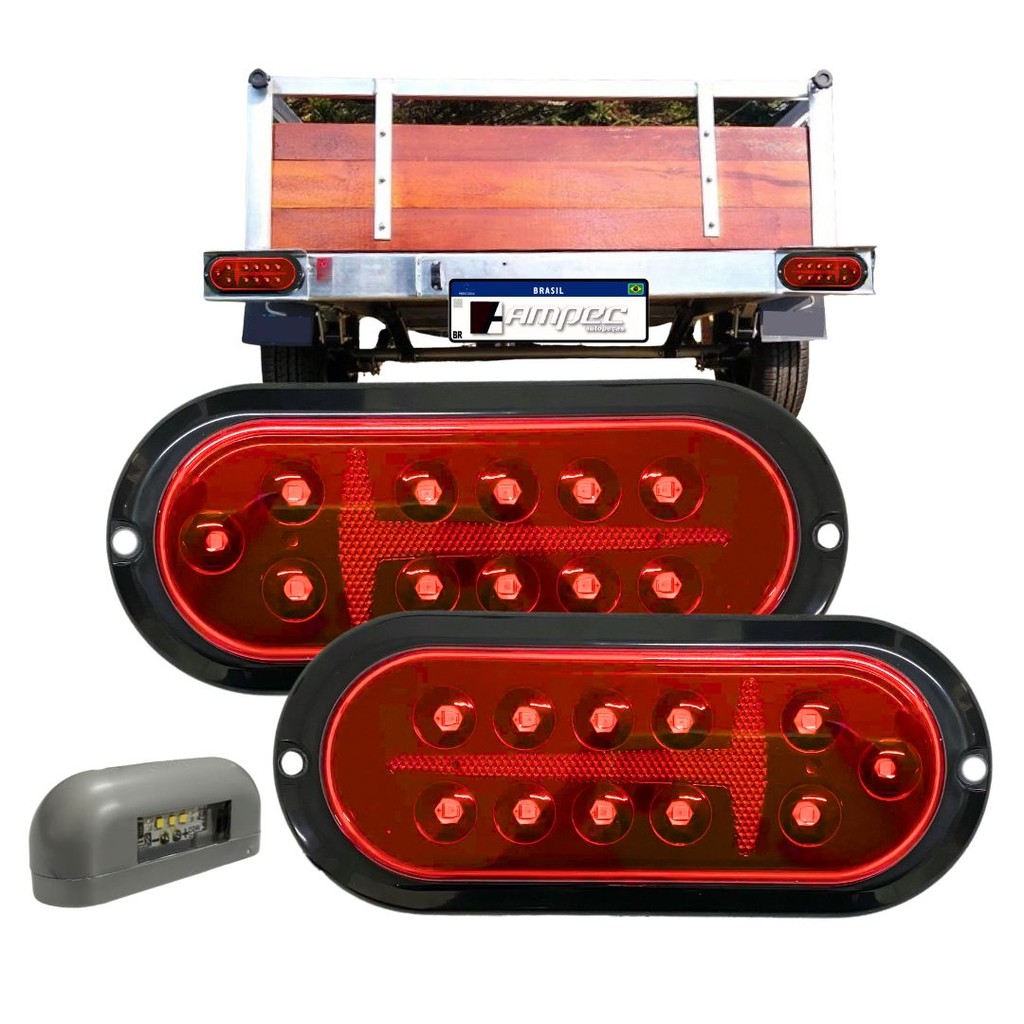 Kit Lanterna Traseira LED Carretinha Reboque Vermelha Meia Luz Pisca Freio Luz Placa Universal