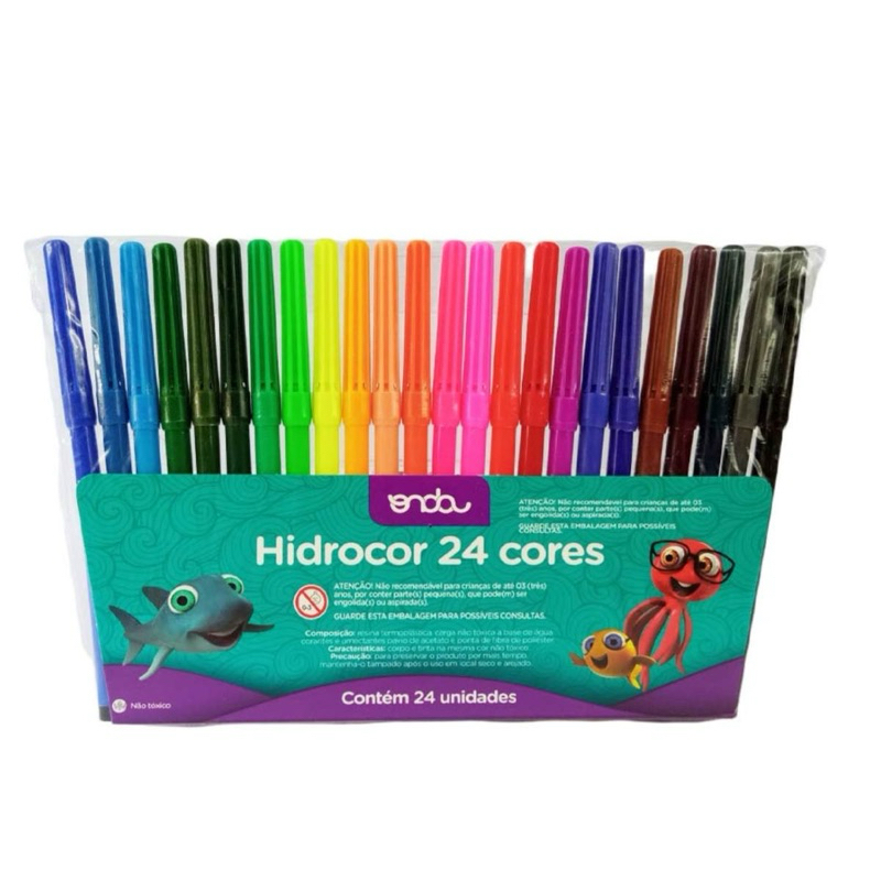 O Lápis de Cor 24 é essencial para o material escolar. Com formato sextavado e ponta resistente, oferece praticidade e durabilidade para acompanhar as atividades. Com cores vibrantes e não tóxicas, proporciona segurança e diversão na hora da criação. Ideal para a volta às aulas, este conjunto de 24 cores estimula a criatividade dos estudantes, garantindo momentos de aprendizado cheios de cor e expressão artística. Completa o kit escolar com versatilidade e qualidade. ESPECIFICAÇÕES TÉCNICAS Composição: Resinas plásticas, pigmentos e cera. Formato: sextavado -------------------------------------------------------------------------------------------------------------------------------------------------------------------------------------------- Caneta Hidrográfica Com 24 Unidades Caneta Hidrográfica ou Canetinha possui excelente qualidade e as mais variadas cores, ideal para seus Desenhos, Trabalhos ártiscos ou Escolares. Oferece uso fácil,confortável e Leve, com as mais variadas cores. Características: Não Tóxico Material: Resina Termoplástica,carga não tóxica a base de água,corantes e umectantes, pavio de acetato e ponta de fibra de poliéster. Produto Contém: 1 Pacote de Canetas com 24 cores (unidades) Diferentes. ----------------------------------------------------------------------------------------------------------------------------------------------------------------------------------------------------- As embalagens trazem alguns dos personagens clássicos favoritos das crianças e 12 cores diferentes e vibrantes em cada caixa. E os gizes ainda são envoltos com estampa personalizada do Ursinho Pooh e contam com formato redondo e medidas de 8 mm X 75 mm. É um produto 100% seguro, já que possui apenas ceras, carga mineral inerte e pigmentos orgânicos em sua composição.