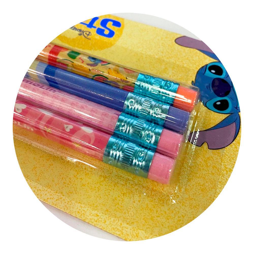 Kit Lápis Grafite HB c/ Borracha 4 Unidades Stitch Molin