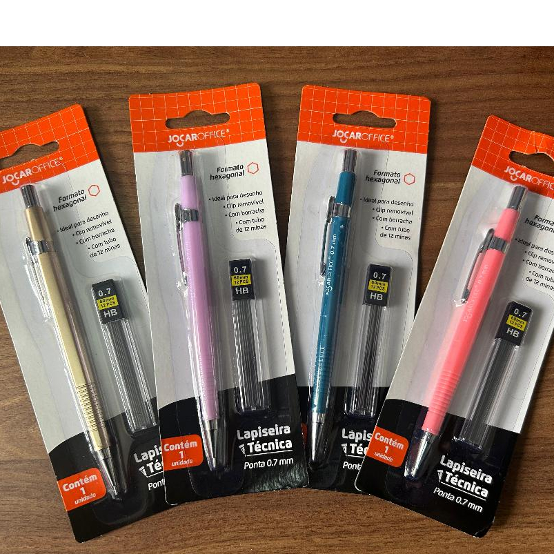 kit Lapiseira Técnica + tubo 12 grafites Hexagonal 0.7mm Jocar GRATIS CORES voltas as aulas