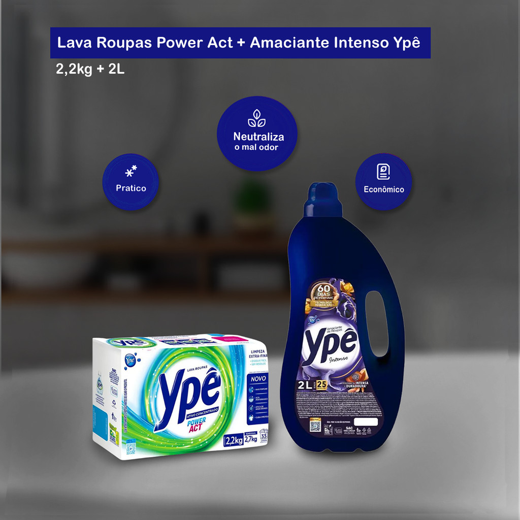 Kit Lava Roupas 2,2kg Power Act + Amaciante Intenso 2L Ypê