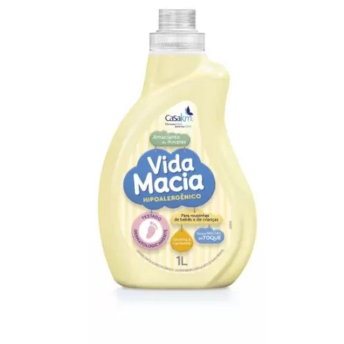 KIT LAVA ROUPINHAS DE BEBÊ VIDA MACIA CONTENDO 03 ÍTENS : 1 LAVA ROUPAS DE BEBE VIDA MACIA DE 01 L 01 AMACIANTE VIDA MACIA DE 1 L E 1 TIRA MANCHAS HIPOALERGÊNICO VIDA MACIA DE 500 ML. Sua formulação balanceada é menos agressiva aos tecidos, deixando um perfume suave e as cores vivas. Para um tratamento completo nas roupinhas dos bebês, recomenda-se o uso do lava-roupas vida macia e do tira-manchas vida macia. Hipoalergênico: fórmula menos agressiva. Limpa sem agredir as roupas. Reaviva as cores. Testado dermatologicamente. Perfume suave. Tampa dosadora. Casa Km