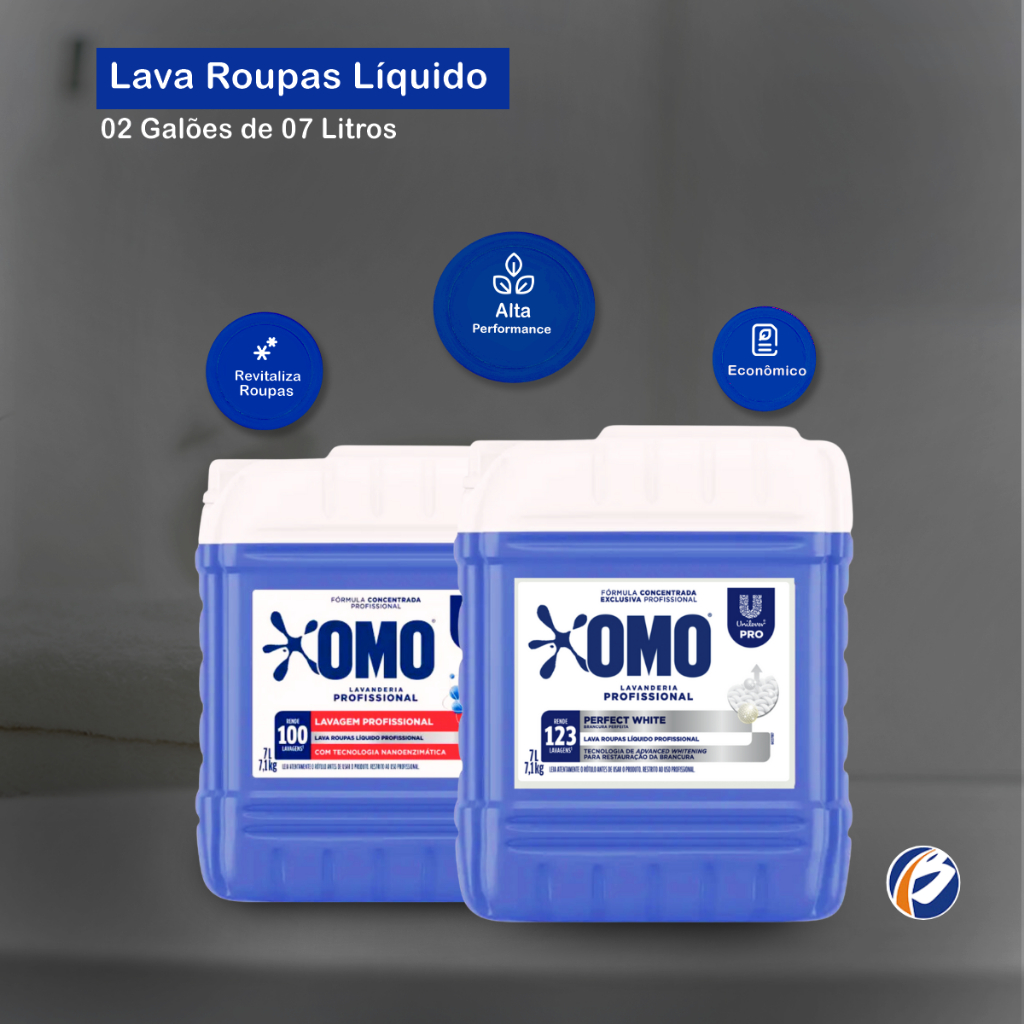 Kit Lava Roupas Líquido Perfect White Omo 7L + Lavanderia Pro Omo 7L OMO Perfect White 7L é o produto certo para a lavagem das roupas brancas por atuar na remoção do amarelamento, com rendimento de até 123 lavagens. OMO Perfect White Líquido atua com eficiência na remoção de óleos e gorduras de origem vegetal e animal devido à sua concentração de ativos. O OMO Roupa Branca pode ser usado para revitalizar roupas, lençóis, toalhas, cobertores, uniformes, entre muitos outros tecidos. Além disso, ele foi desenvolvido principalmente para atender a necessidade de lavanderias profissionais e comerciais. Fragrância: Suave Embalagem: 01 galão de 7L OMO Lavanderia Pro Líquido Lavagem Perfeita oferece a mais avançada tecnologia de compactação em lava-roupas, que permite o tratamento do mesmo número de peças consumindo menos produto. Com um poder de limpeza para roupas delicadas e pesadas, cuida das cores da roupa e remove as manchas na primeira lavagem. É um produto mais sustentável e atinge um alto rendimento: OMO Lavagem Perfeita 7L rende 500kg de roupas limpas! Cor: Azul Fragrância: Característica Embalagem: 01 galão de 7L