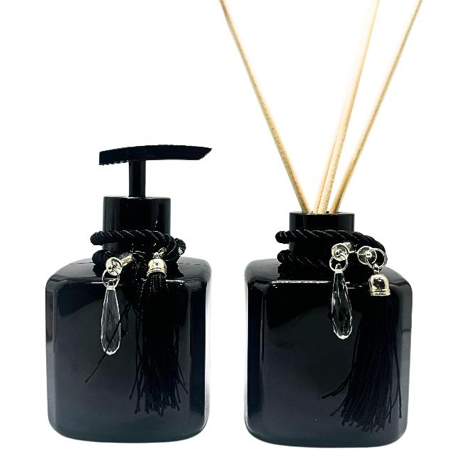 O kit acompanha: 02 Frascos Pets (Plástico) com capacidade de 200ml; 01 Válvula pump luxo; 01 Tampa difusora luxo; 02 Enfeites para os frascos (cordões decorativos); 04 Varetas de madeira OBS: PODERÁ OCORRER DE TER UMA VARIAÇÃO DE CORES NAS TAMPAS E VÁLVULAS DOURADO E ROSE, POIS SÃO IMPORTADAS E EXISTE ESTA PEQUENA DIFERENÇA DE TONALIDADE.
