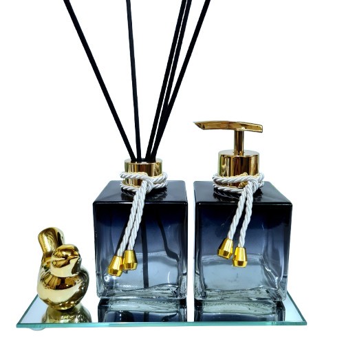 kit lavabo, difusor saboneteira, bandeja e passarinho de porcelana. frasco 250 ml em VIDRO. Mega promoção