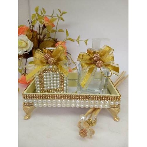 Kit Lavabo Luxo Perolas Difusor Sabonete Bandeja Varetas