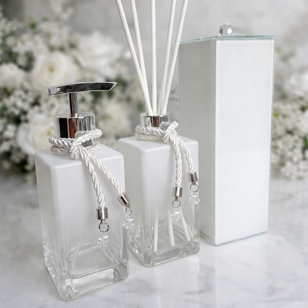 Kit Lavabo Square Branco Degrade Saboneteira e Aromatizador com Porta Escova
