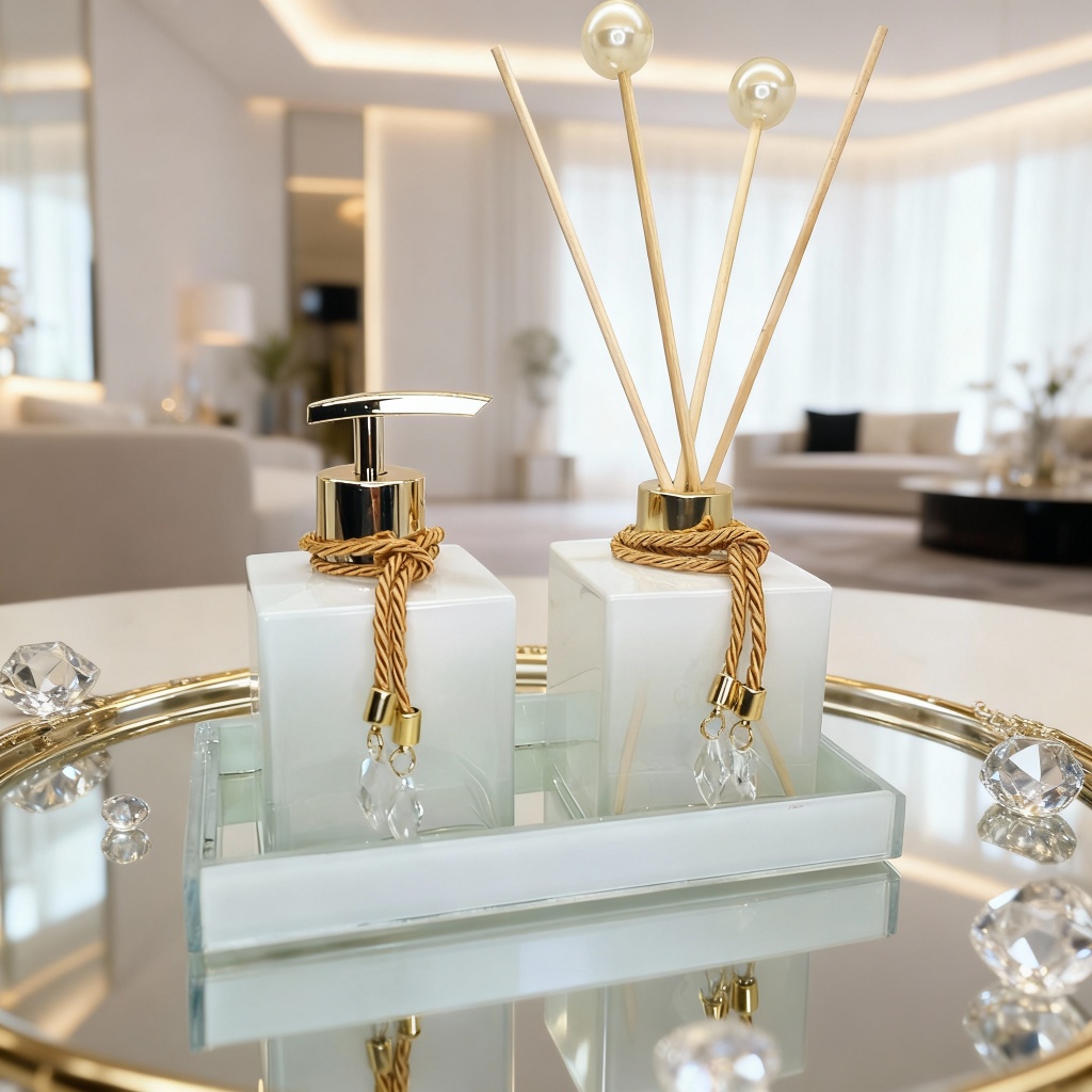 Você já entrou em um ambiente e sentiu aquele perfume delicado, envolvente, que imediatamente transmite sofisticação? É isso que o nosso kit de lavabo decorativo premium entrega: uma experiência única de elegância, cuidado e bom gosto. Pensado para quem valoriza os detalhes, nosso kit une beleza, funcionalidade e durabilidade. Os frascos possuem acabamento luxuoso e tamanho ideal para compor a decoração com destaque, mantendo o ambiente perfumado por muito mais tempo. 💠 Frascos com excelente presença visual: eles não passam despercebidos. Imponentes e proporcionais, se tornam o ponto alto da decoração. 💠 Luxo que remete aos lavabos de hotéis 5 estrelas. 💠 Kit completo e pronto para uso, com difusor, saboneteira e varetas decoradas — cada detalhe pensado com carinho. 💠 Design exclusivo, ideal para quem ama ambientes elegantes e quer causar boa impressão nas visitas. 💠 Presente perfeito, já vai pronto para encantar — seja para você ou para quem você ama. ⚠️ Produzido em tiragens limitadas. A procura é alta e nossos kits esgotam rapidamente. 💠Garanta o seu agora e sinta o prazer de ter um lavabo digno de capa de revista. O kit é composto de : 02 frascos cubo 250 ML (10x7,5 cm) 02 cordoes decorados 01 Válvula Luxo 01 Tampa Luxo 04 Varetas sendo 2 decoradas Para os modelos que acompanham Bandeja: Tamanho:21X11 Cm Espessura :4 mm