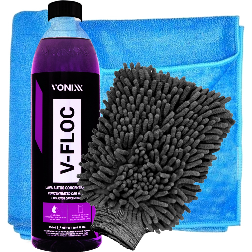 Kit Lavagem Automotiva Limpeza Vonixx - Shampoo V-Floc 500ml + Luva e Toalha Secagem