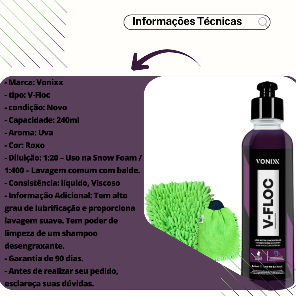 | Kit Lavagem Automotiva Vonixx V-Floc 240ml com Luva de Microfibra este produto | R$ 47,61 | 10% | 5.0/5 | — |