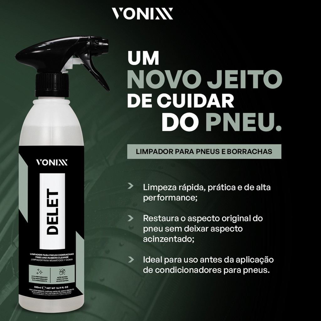 Apresentamos um kit de excelência para limpeza automotiva, proveniente de uma das marcas líderes do mercado. Com este conjunto, você poderá não apenas limpar e encerar a pintura do seu veículo, mas também revitalizar os plásticos, remover até a sujeira mais incrustada e garantir uma proteção duradoura. Ideal para entusiastas que valorizam qualidade e performance em cada detalhe da manutenção do seu carro. Contém 1 IZER DESCONTAMINANTE FERROSO RODAS E CHASSI 500ml 1 SINTRA FAST LIMPEZA INTERNA DE VEÍCULOS 500ml 1 DELET LIMPADOR PARA PNEUS E BORRACHAS 500ml 1 BLEND CERAMIC & CARNAÚBA SPRAY WAX 500ml 1 SHAMPOO V-FLOC LAVA AUTOS SUPER CONCENTRADO 500ml 1 PRIZM LIMPA VIDROS REMOVE CHUVA ÁCIDA E SUJEIRAS AGARRADAS 500ml 1 TOALHA DE MICROFIBRA SEM COSTURA 40x40CM 350GSM • Izer é um descontaminante ferroso de pH neutro ideal para remover fuligem de freio oxidado em rodas, oxidação de material ferroso da pintura e outras partes externas do veículo, além de pontos de ferrugem em partes cromadas. No motor, ajuda a renovar partes metálicas oxidadas, excluindo superfícies zincadas. • Sintra Fast é um produto versátil para limpeza automotiva, eficaz na remoção de manchas de gordura e sujeira em painéis, portas, bancadas de couro, carpetes e estofados. Com propriedades bactericidas e germicidas, equilibra o pH e elimina microrganismos nocivos, melhorando a higiene e reduzindo maus odores no interior do veículo. • Delet é um limpador de alta performance, desenvolvido especificamente para eliminar sujidades intensas de pneus e borrachas, assegurando uma limpeza completa e restaurando sua aparência original sem deixar resíduos acinzentados. Esta limpeza eficaz contribui significativamente para otimizar a eficiência dos produtos de condicionamento de pneus. • Blend Ceramic e Carnaúba Spray Wax combina o poder do com a pureza da carnaúba tipo 1, oferecendo proteção veicular de até quatro meses. Esta cera híbrida proporciona resistência cerâmica, brilho intenso da carnaúba e capacidade de repelir a água, mantendo sua superfície veicular protegida e com um acabamento impecável. • V-FLOC é um lava autos de alta performance com pH neutro, ideal para uma limpeza suave e eficiente. Sua fórmula avançada contém agentes condicionadores e tensoativos especiais que proporcionam uma lavagem delicada. Com alto grau de lubrificação, reduz significativamente o coeficiente de atrito, facilitando o deslize suave da luva de microfibra e minimizando microrriscos na pintura. Além disso, V-FLOC realça o brilho e renova o aspecto da pintura, garantindo resultados impressionantes. • Prizm restaura a transparência dos vidros automotivos, eliminando marcas de água incrustadas, impurezas e contaminantes persistentes que resistem à limpeza convencional. Sua fórmula atua quimicamente contra manchas e sujeiras, proporcionando uma remoção fácil e eficaz em para-brisas, vidros laterais e traseiros. • A toalha de microfibra sem costura Vonixx foi projetada com corte a laser para proteger a pintura do veículo, proporcionando um acabamento excelente e segura limpeza tanto interna quanto externa. É especialmente indicada para lavagens a seco, remoção de ceras, selantes e vitrificadores, além de aplicação de ceras spray e finalização de polimento.