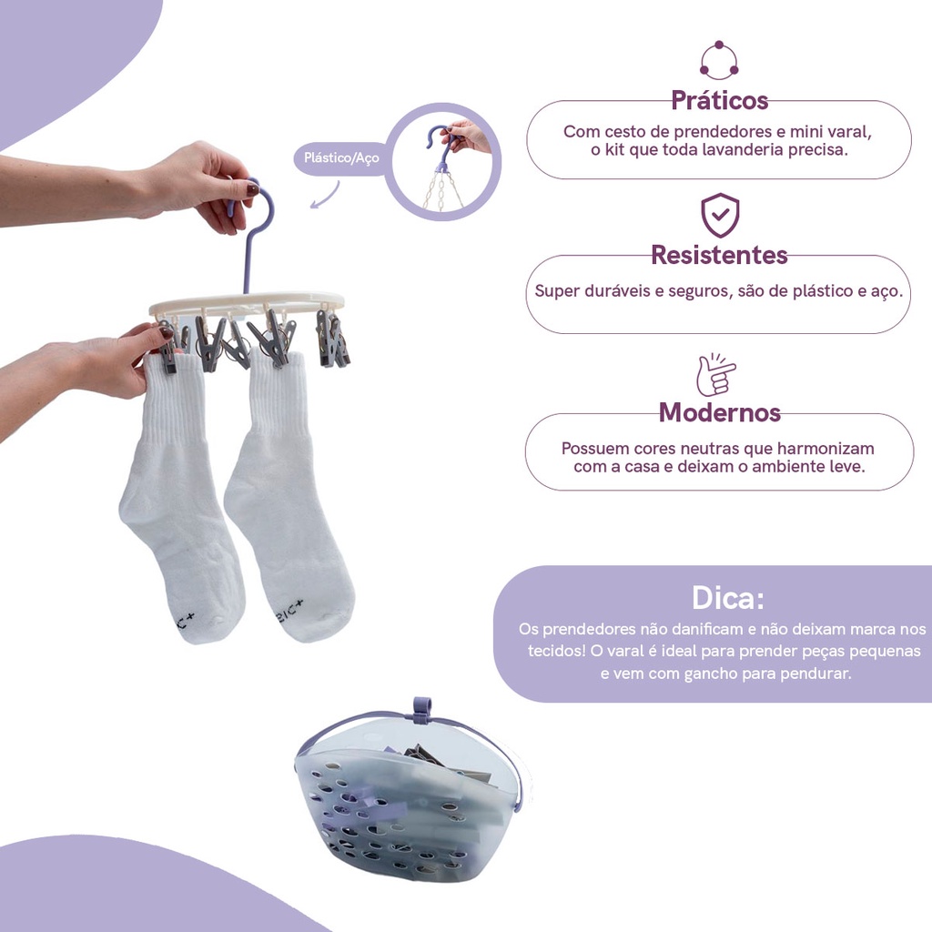 Kit lavanderia com cesto prendedores e mini varal - Simplo